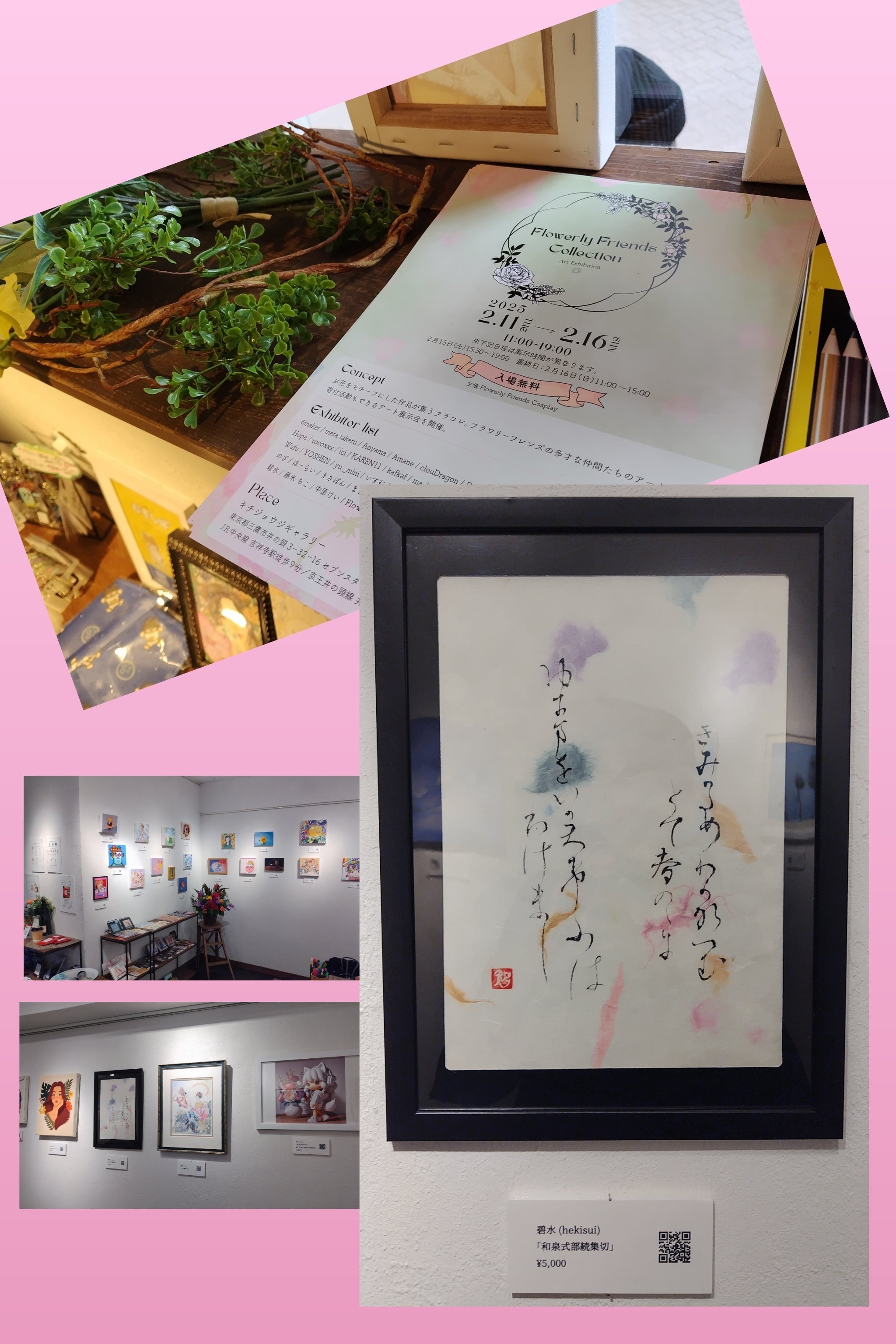 2025年2月には「Flowerly Friends Collection 2025」が開催されました!花をテーマに、アーティストの個性豊かな作品が一堂に会した展示会です。碧水は、山形県西川町で実際に紙漉きをしたものに、「和泉式部続集切」を書きました。かな書道の作品で、日本独自の書として、ベトナムでも展示していただこうと思います!