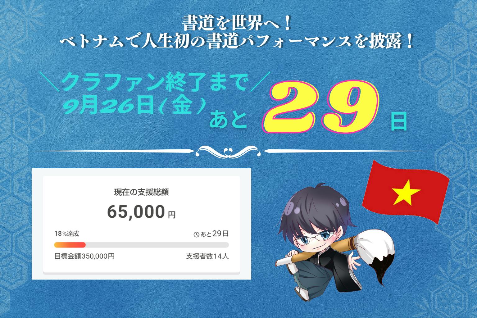 現在は支援総額65,000円、18%の達成率です!100%到達に向けて、まだまだ皆様からのお力を借りさせてください!