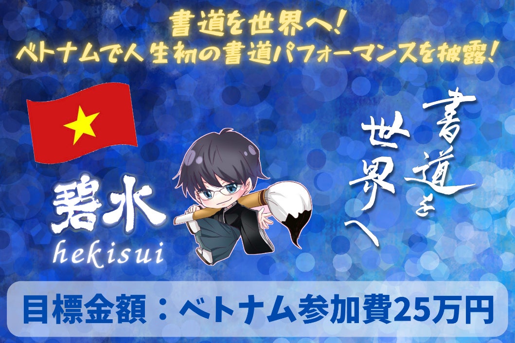 今回は、新たに書道パフォーマンスに初挑戦をいたします!初めての書道パフォーマンスを海外、ベトナムで披露するという大きな挑戦に挑みます。書道は日本の伝統文化の一つであり、その美しさと奥深さは言葉では言い尽くせません。ぜひ、海外でのイベント参加に向けて、支援者の皆様と共に作り上げていけたら嬉しいです!