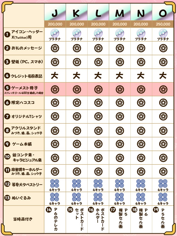 こちら達成時はFコース以降の支援者様のリターン品に「支援者限定ゲームパッケージ」を追加となります。