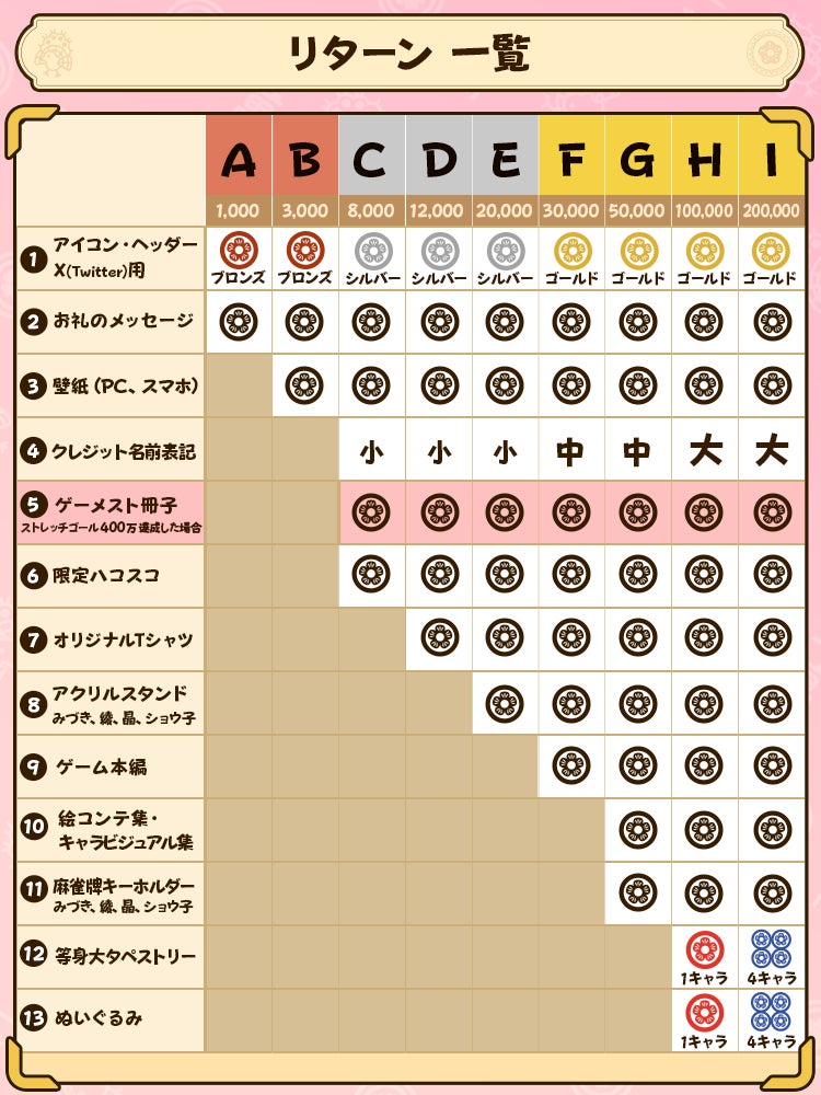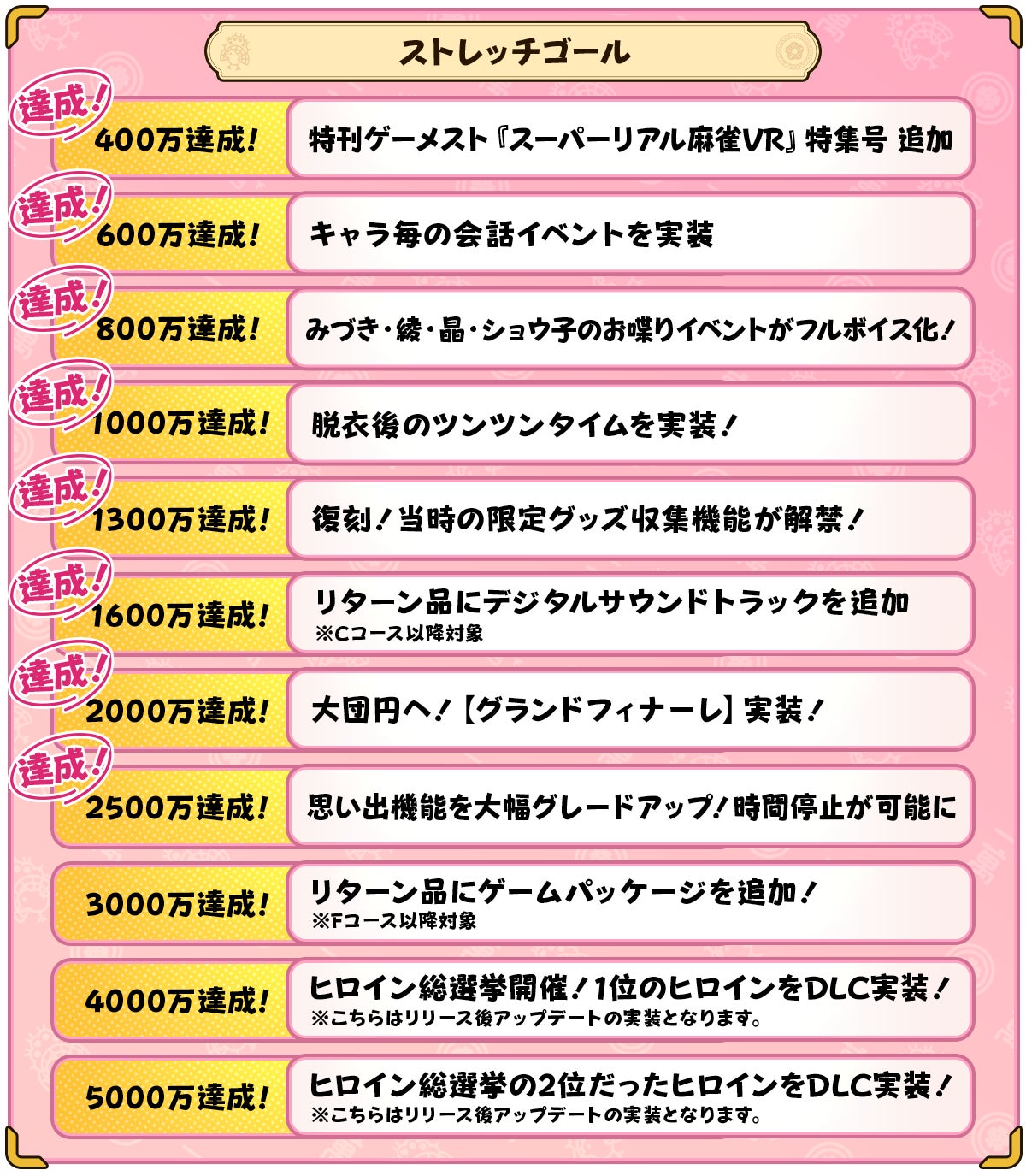 こちら達成時はFコース以降の支援者様のリターン品に「支援者限定ゲームパッケージ」を追加となります。
