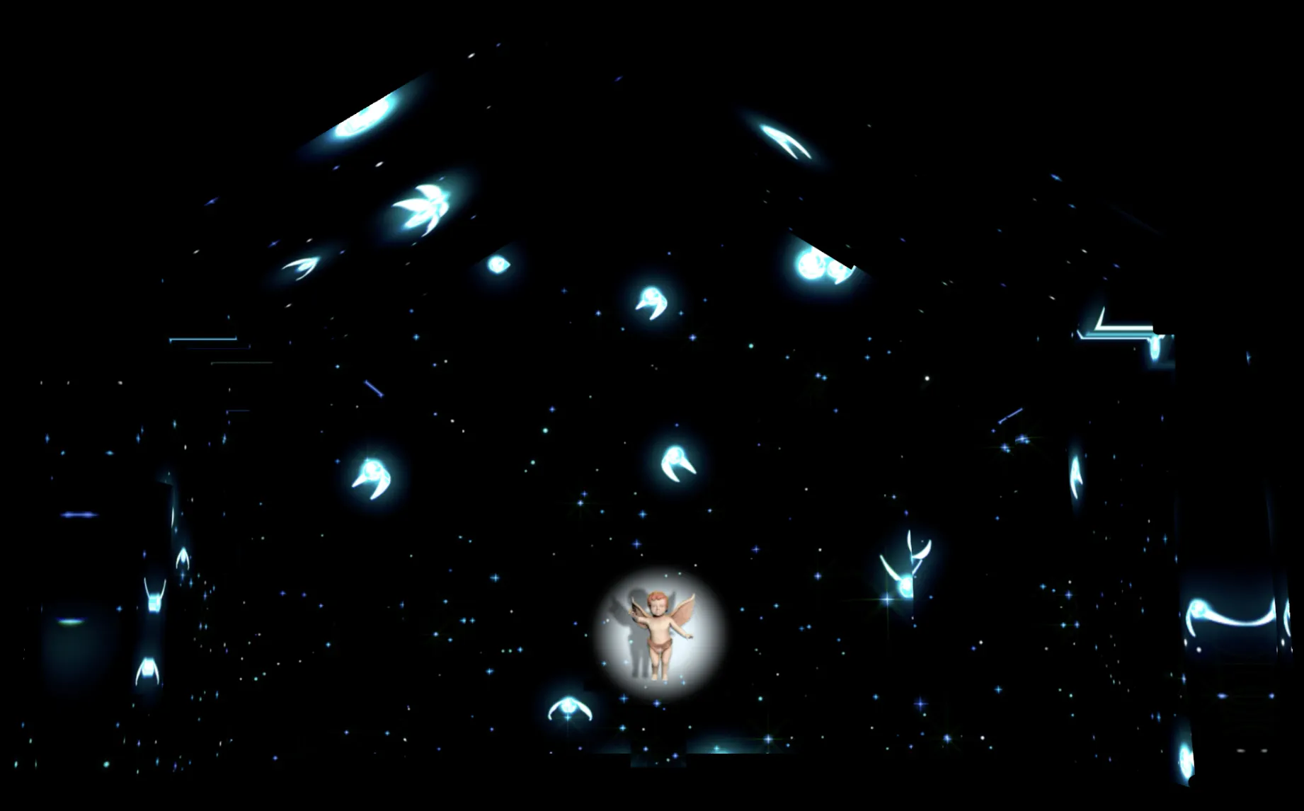 ピアノや弦楽の生演奏に、壁、天井一面に広がる映像美がシンクロ。