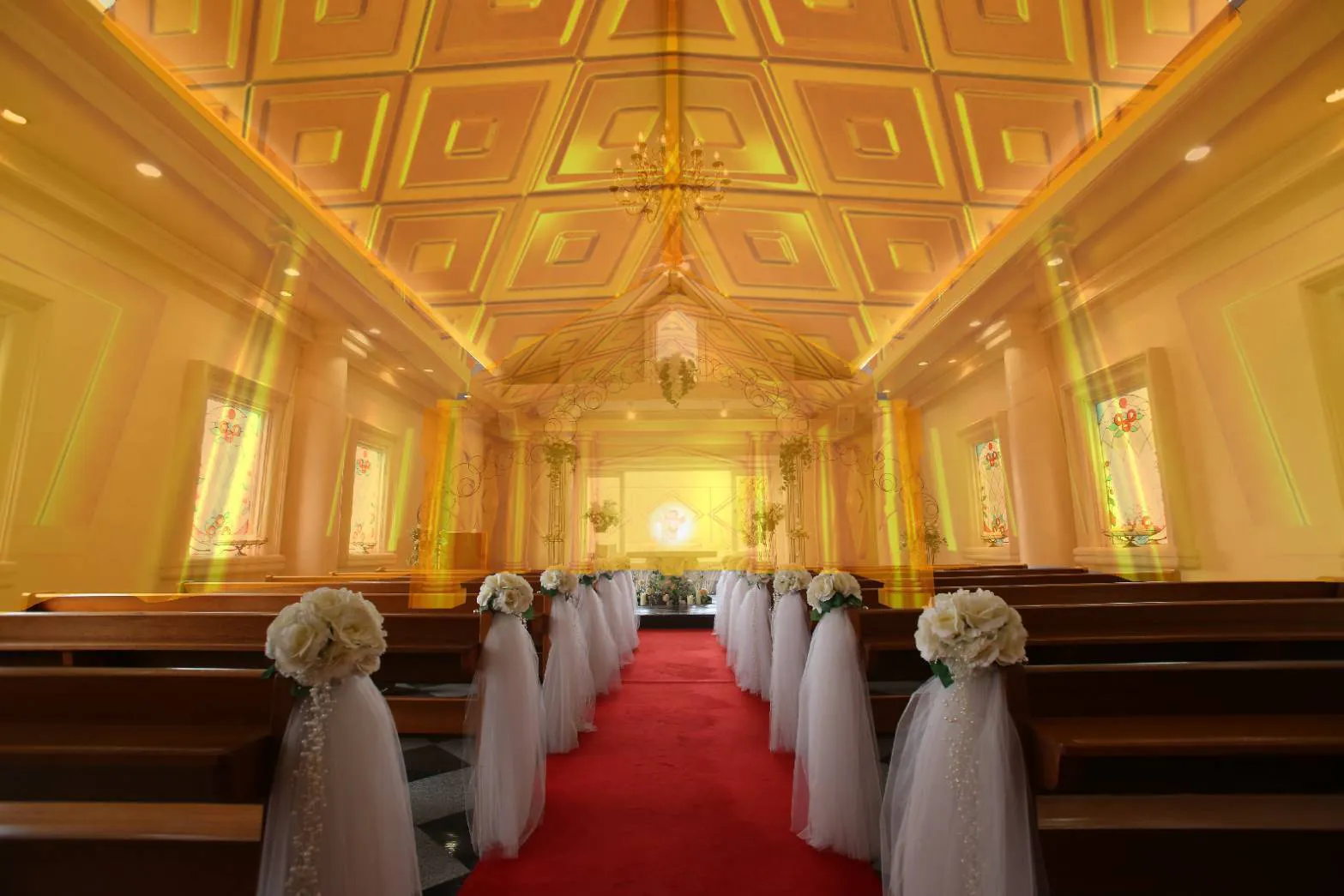 注目ポイント①:ダイヤモンド瀬戸内マリンホテルのチャペルが幻想空間に