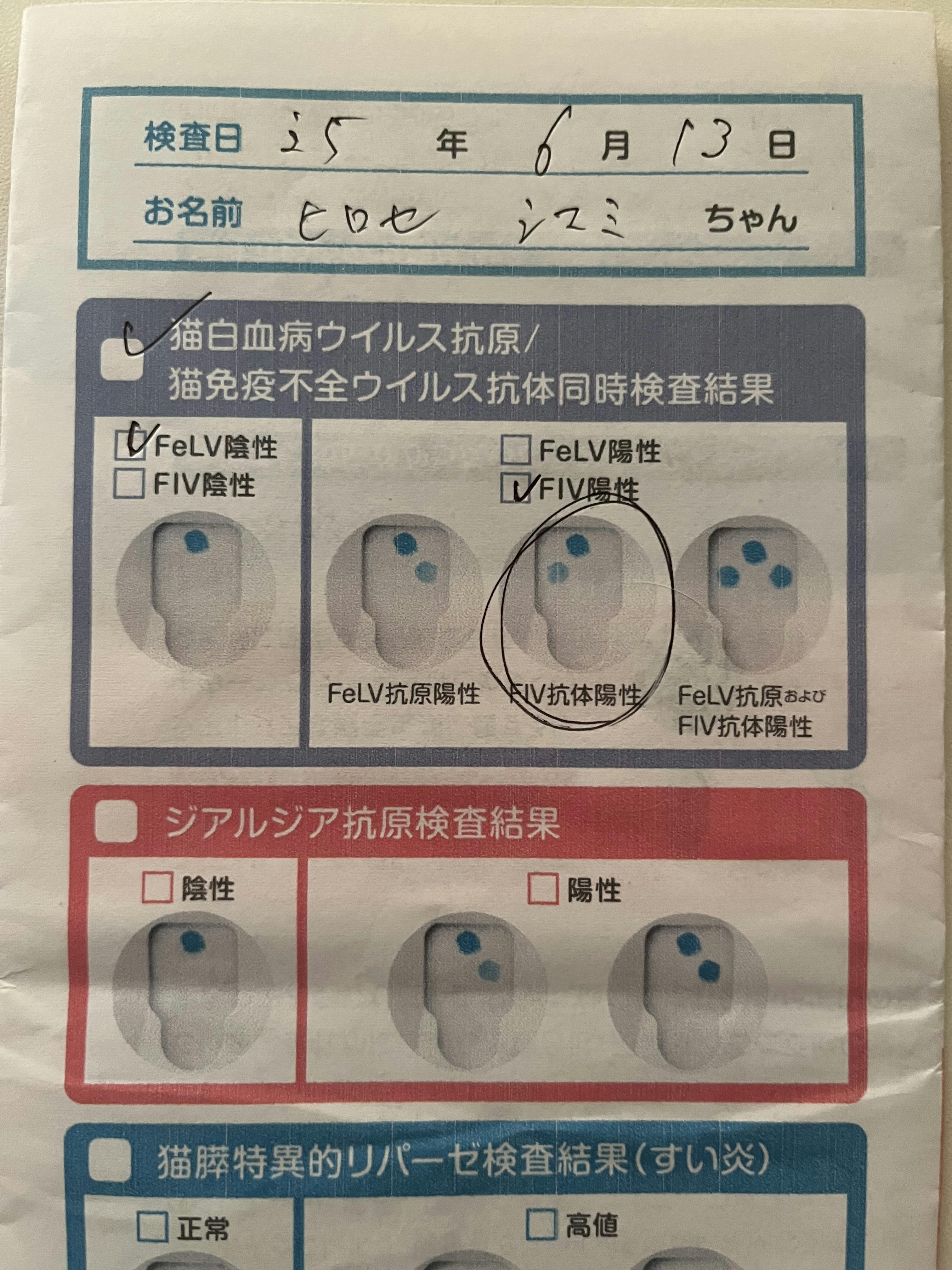 クラウドファンディング第2弾開始前、チャー坊とシマミちゃんには、猫エイズ検査を再度行いました。