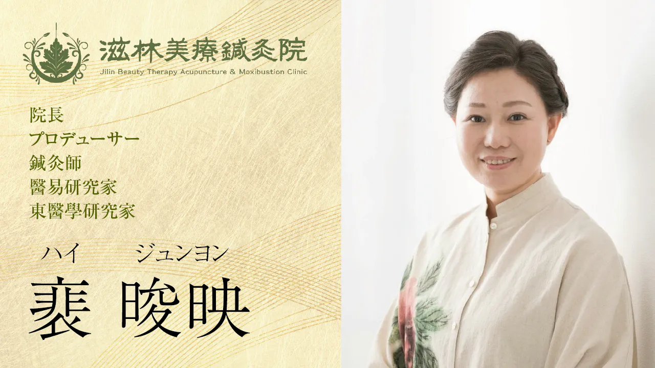 大阪市中央区伏見町にて「滋林美療鍼灸院(じりんみりょうしんきゅういん)」を開院し、院長・プロデューサー・鍼灸師として日々施術にあたっております、ハイ・ジュンヨン(裵晙映)と申します。