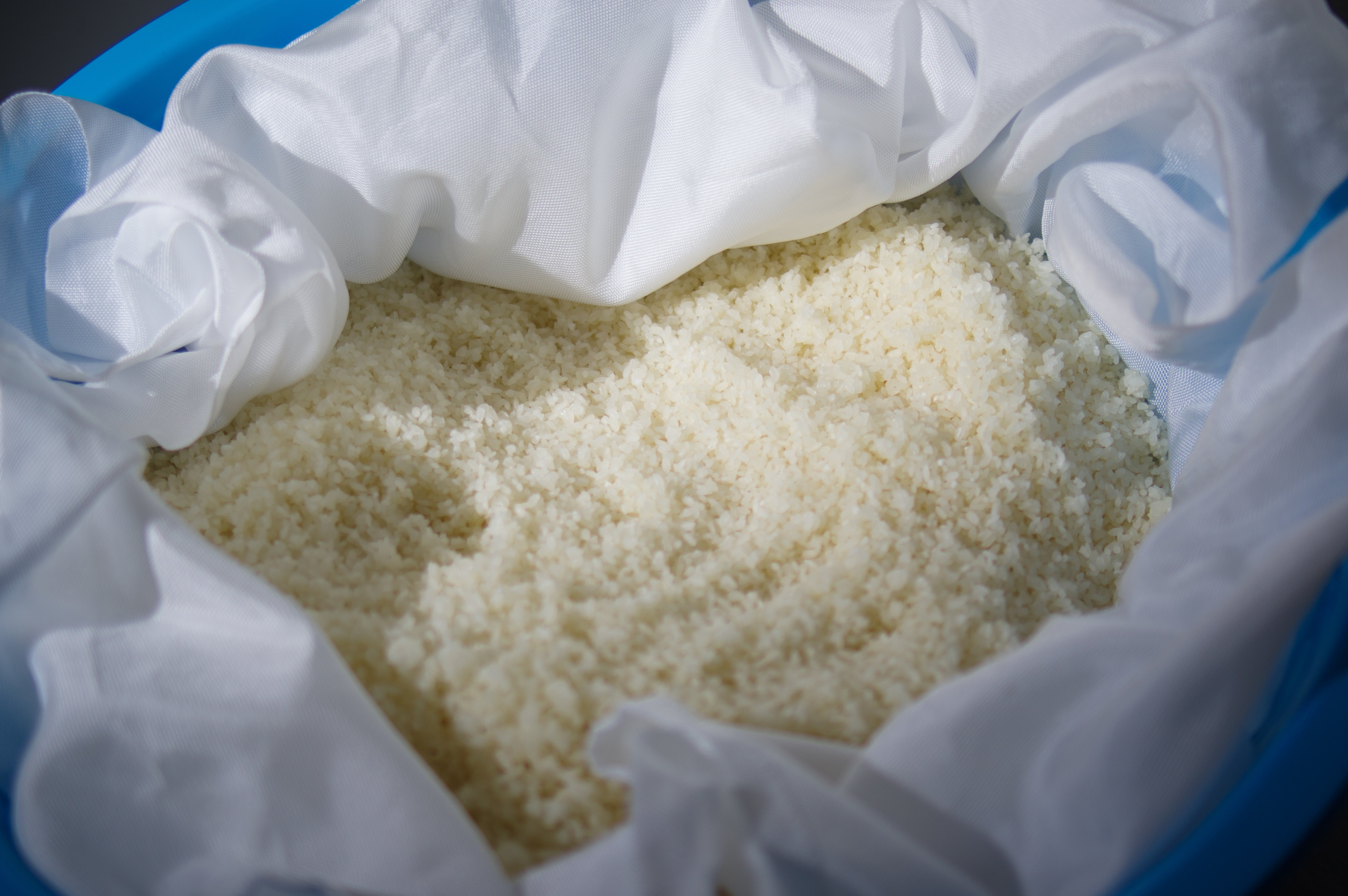 精米90%山田錦の埋け飯。低温下でゆっくりと冷却し、蒸米を硬くしていく(老化)