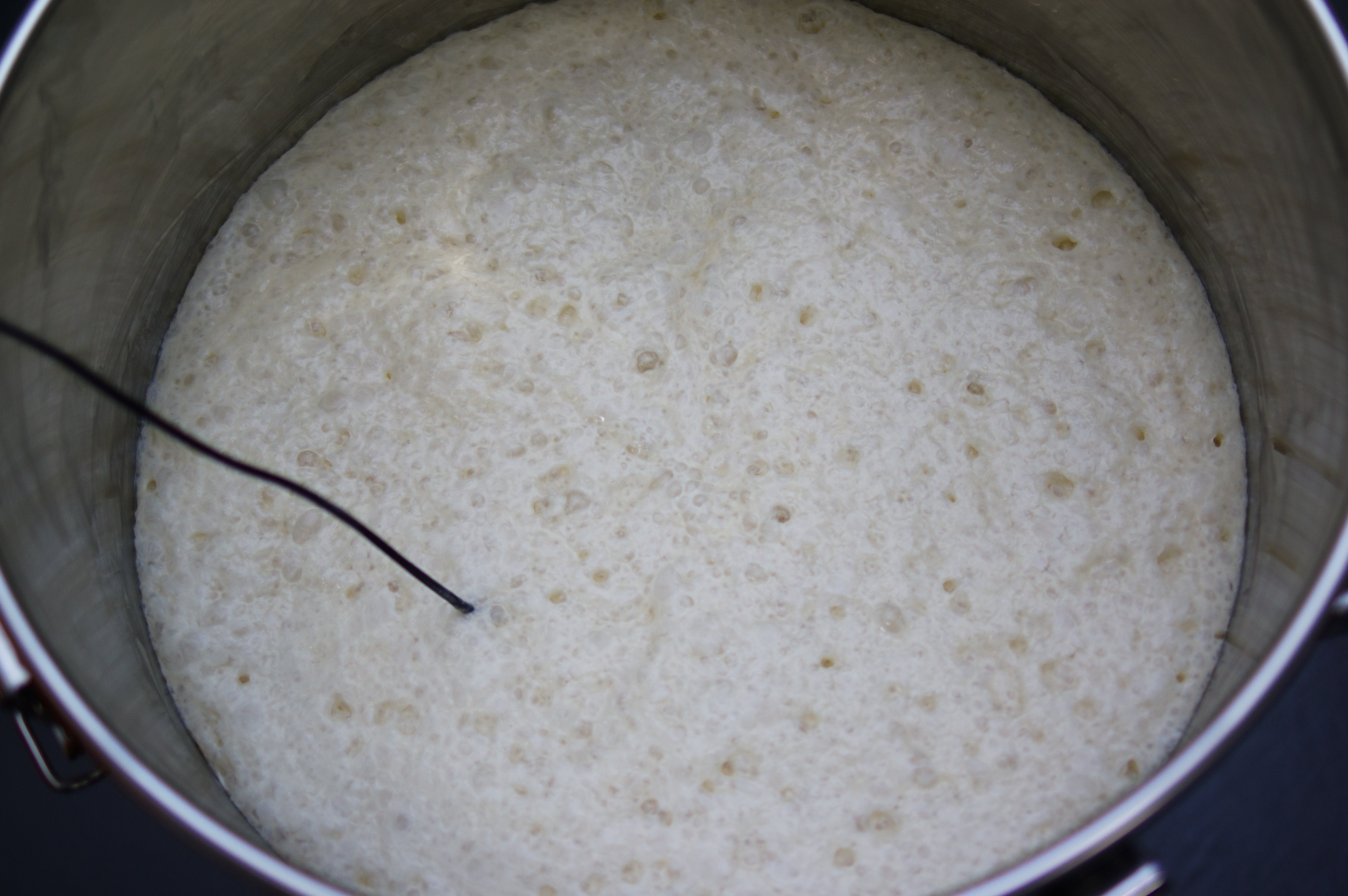 現在、生酛の酒母ではCultivaで単離した野生酵母が湧き始めました。初仕込みゆえ、実際に野生酵母が湧きつくまではハラハラしましたが、この発泡を確認できて少しホッとしております。そして何より、生酛は本当に楽しいですね。まだ酸の香りが強い状態ですが、これから品温を上げ、酵母の発酵をさらに促し、アルコールを生み出していきます。