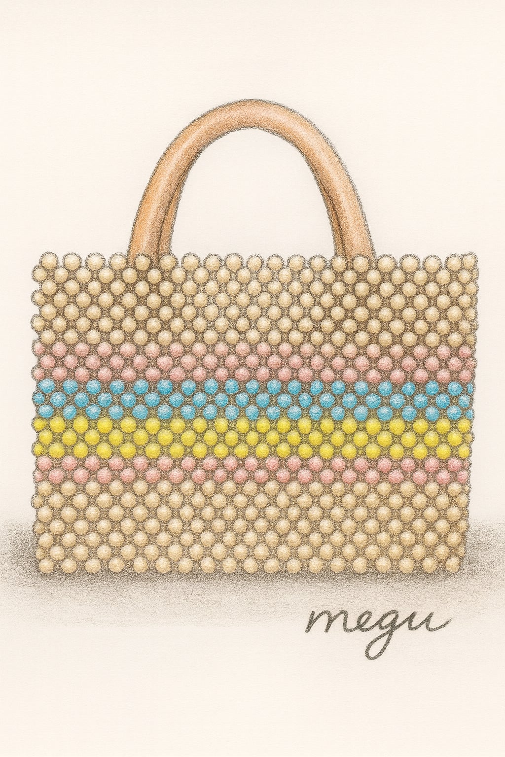 私たちのビーズバッグは、一粒一粒のビーズを丁寧につなげ、時間をかけて手作業で作り上げています。