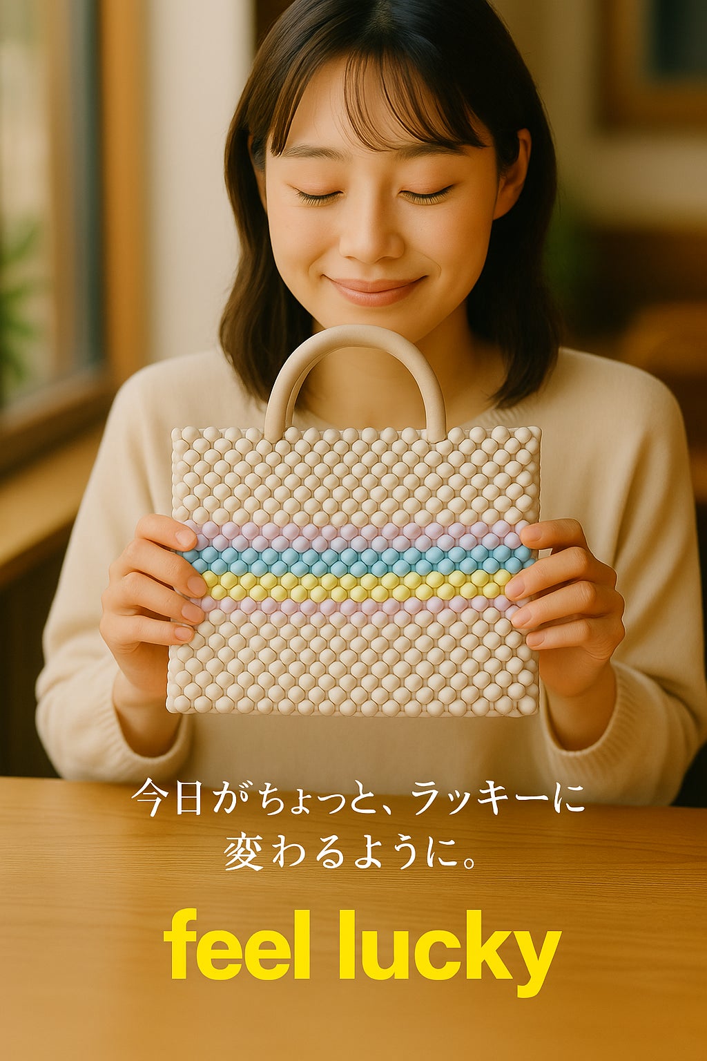 feel luckyは、“持つことで気分が上がる”をテーマにしたビーズバッグブランドです。