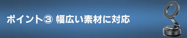 プラスチック、ガラス、木材、金属など、さまざまな素材に対応しており、家庭、オフィス、車内など、どんなシーンでも活躍します。多様な環境で使えるから、あなたのライフスタイルにフィット。どこでも安心して使えるこの製品が、あなたの生活を一層豊かにします。