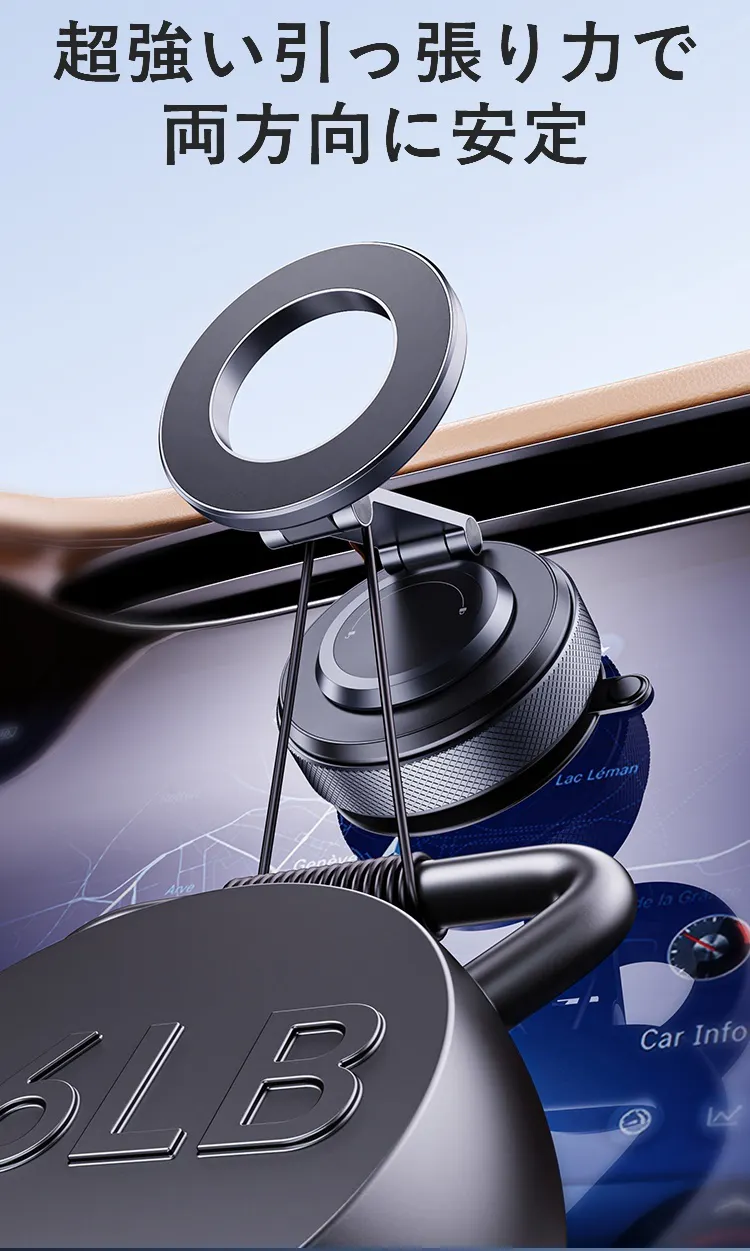 特別な電源がなくても簡単に使える厚手の消泡吸盤。驚くべき吸着力で、どんな場所でもしっかりと固定でき、移動中でも安心です。手軽に取り付けられ、いつでも持ち運び可能。もう充電切れの心配をする必要はありません。あなたのライフスタイルをより便利にします!