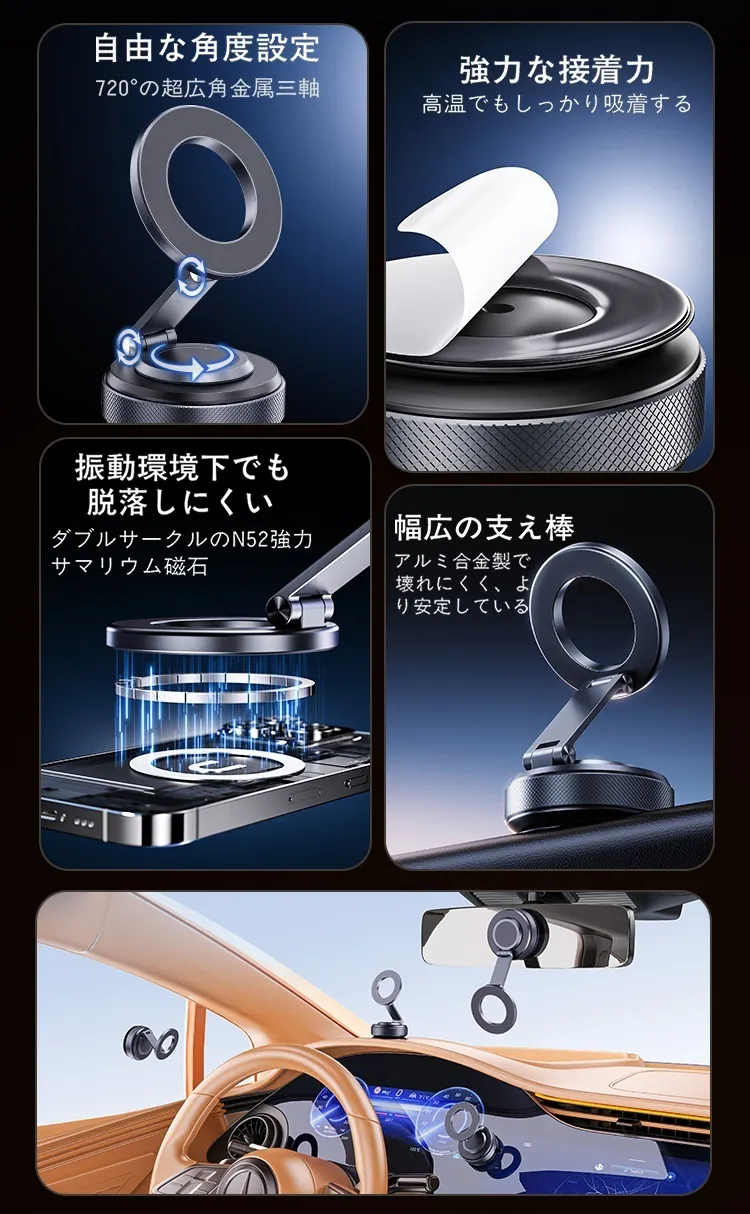 高品質な接着力と強力な磁力を搭載しており、大切なデバイスをしっかりと固定します。振動や衝撃にも耐え、安心して使用できるため、日常生活の中での心配を一切取り除きます。これ以上の選択肢はないと自信を持っておすすめします!