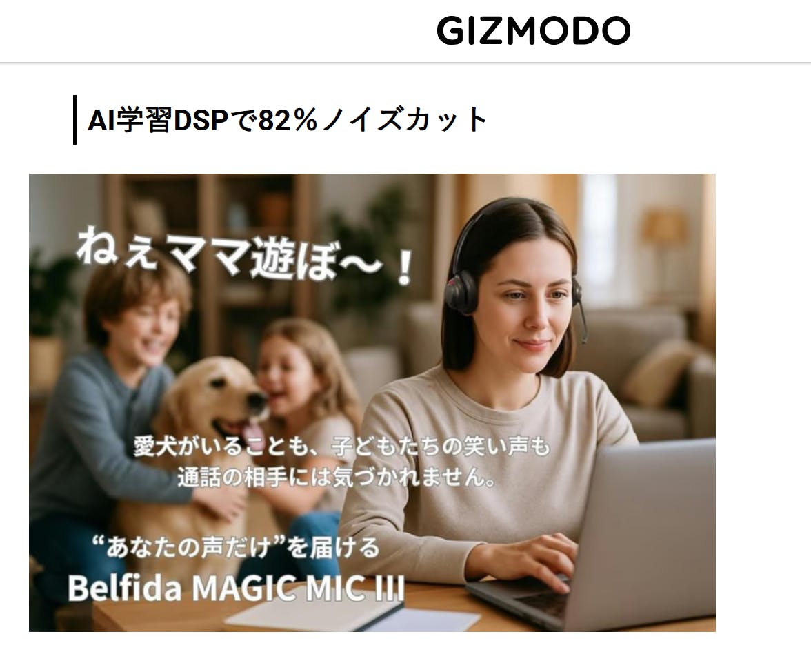みなさまへのご報告です。クラウドファンディング中の「Belfida MAGIC MIC III」が、先日に続き再び LIFEHACKER(ライフハッカー) に取り上げられました!今回の記事では、前回ご紹介いただいたノイズキャンセリング性能に加え、・わずか88gの軽量設計と快適な装着感・PCとスマホを同時に使えるマルチポイント接続の便利さ・デスク環境をスマートに整える充電スタンドといった、日常的な使いやすさや実際の体験レビューが詳しく紹介されています。オンライン会議や作業の合間もストレスなくシームレスに切り替えられる点や、デスクをスッキリ整える充電スタンドなど、開発段階からこだわったポイントを実際に評価いただけたのは大変嬉しいことです。ぜひ記事もご覧いただき、MAGIC MIC IIIの魅力をチェックしてみてください!LIFEHACKER掲載記事はこちら