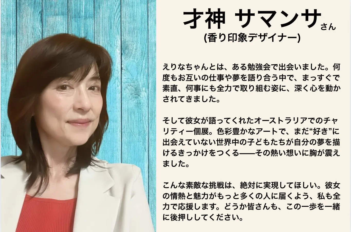 私の尊敬している一人である才神 サマンサ さんより非常に熱い応援メッセージをいただきました。本当にありがとうございます。