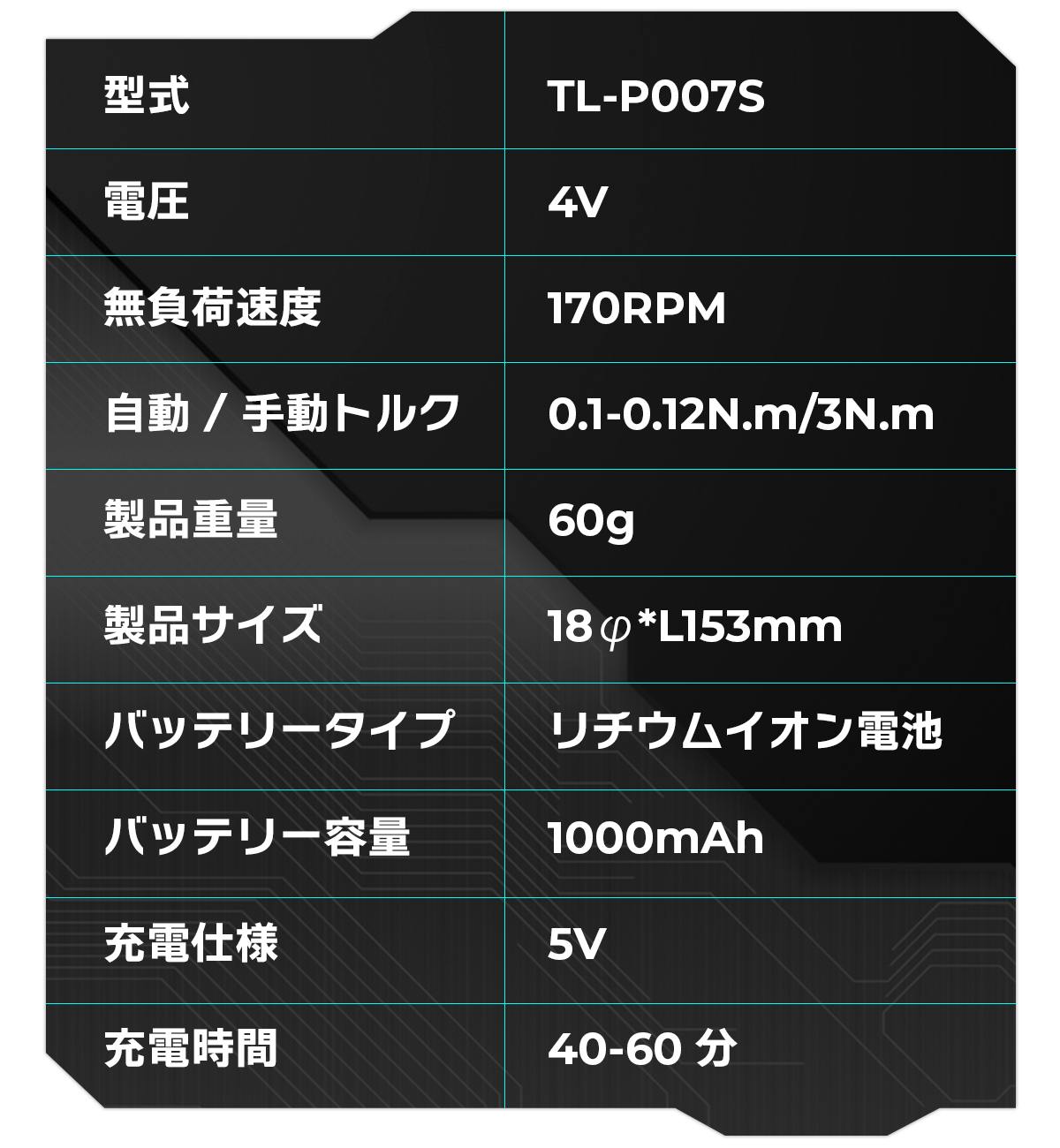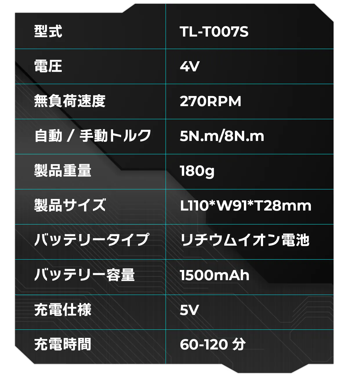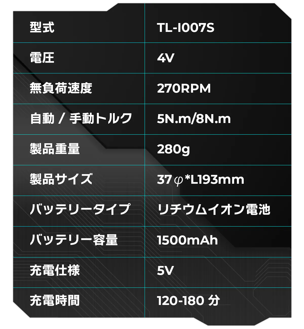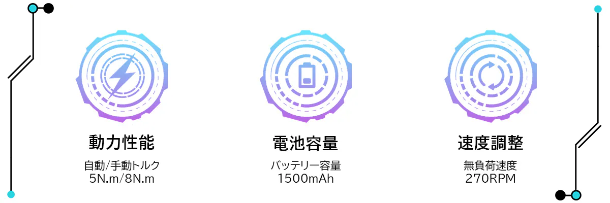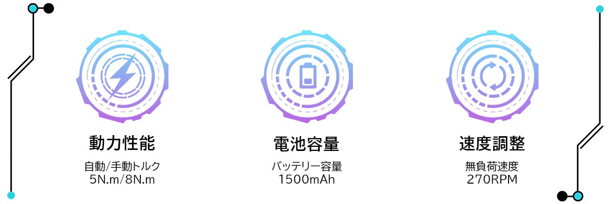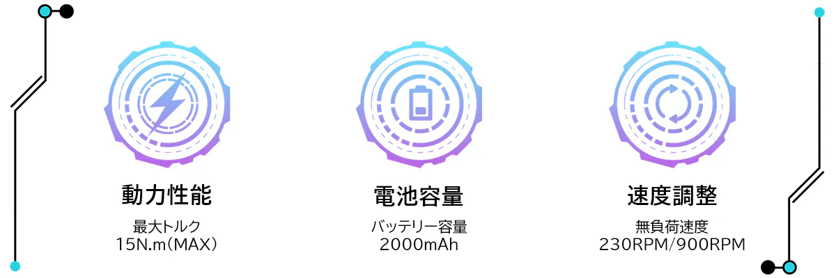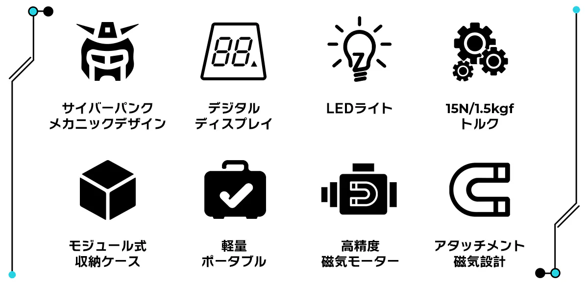 このイメージに沿ってデザインされたMechtron CYBERPUNK Seriesはメカニックで近未来的な見ても使っても楽しめる電動ドライバーとなっています。