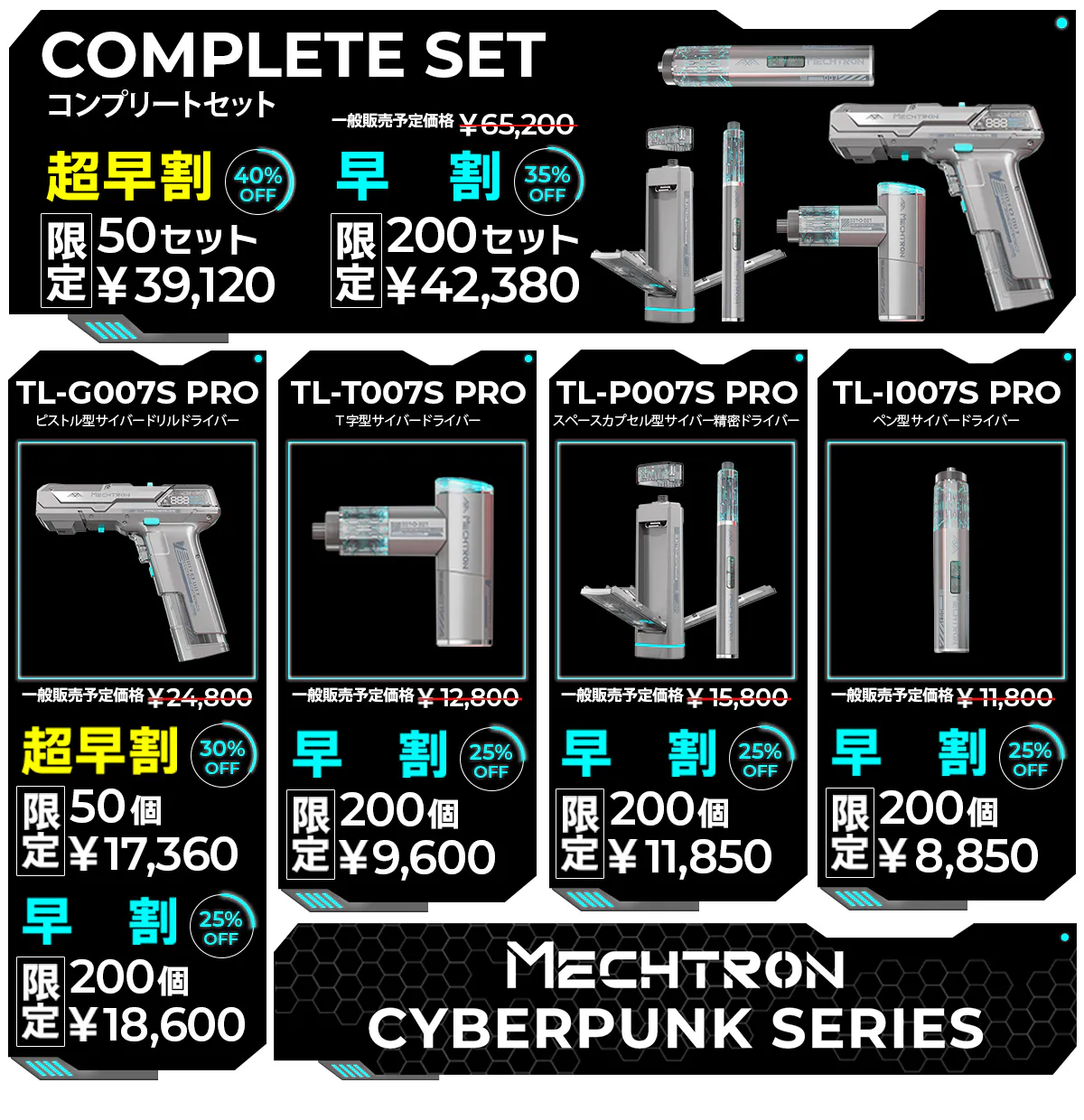 Mechtron CYBERPUNK SeriesはSFの要素と電動ドライバーの機能が融合されており4つのモデルで構成されています。