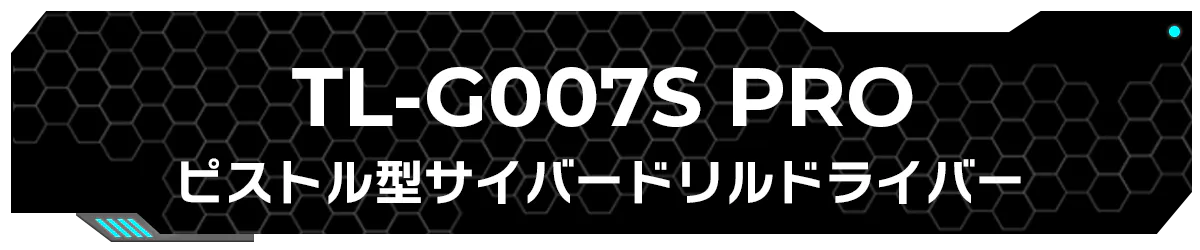 TL-G007S PRO:ピストル型の電動ドライバー。弾倉型バッテリーでピストルの特徴を忠実に再現、ドリルビット装着で穴開けまでできる十分なパワーを保有します。
