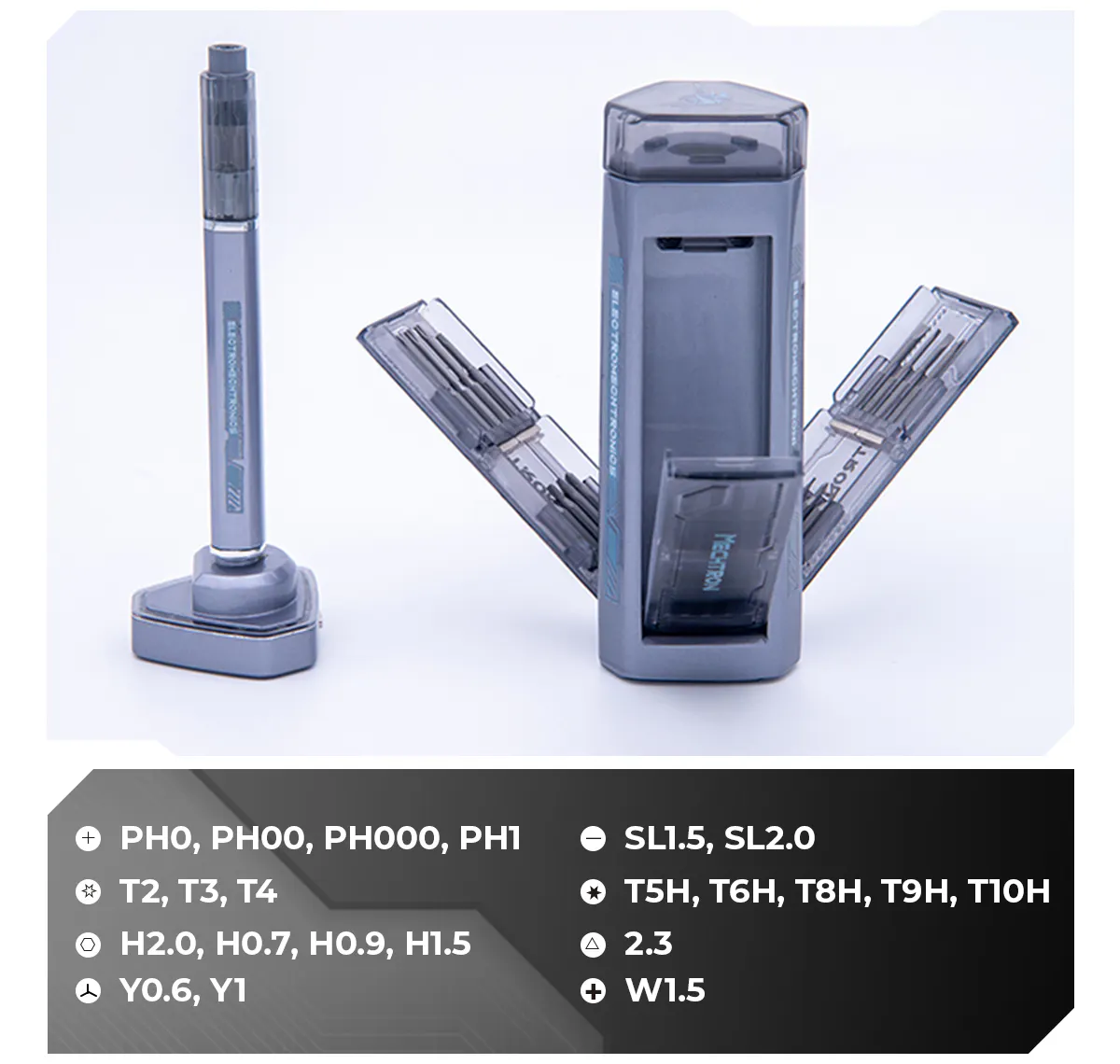 TL-P007S PRO:精密機器用の電動ドライバー。スペースカプセル型の格納庫に本体・ビットを収納でき、持ち運びに便利です。