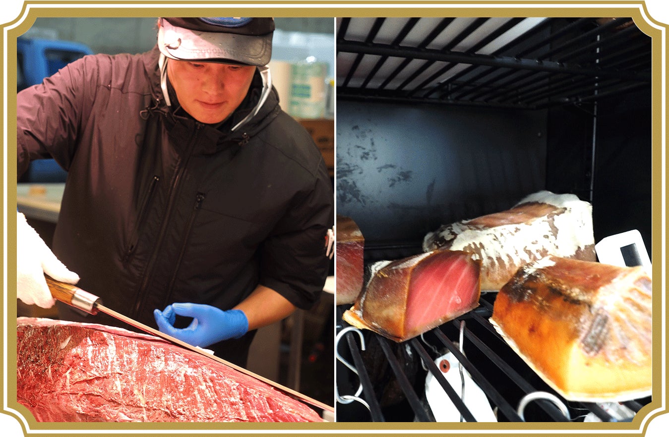 その限界を超えるために誕生したのが、「カビマグロ」です。特殊なカビによる熟成で、マグロの旨味を高めつつ芳醇な香りをプラス。これまでにない深い味わいと香りを実現しました。