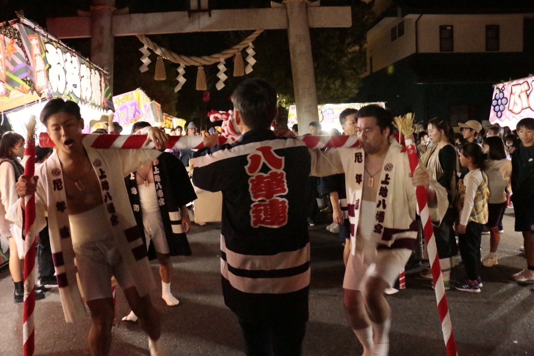 我々八華連は50年の長きにわたり、地域の文化的遺産を守るために活動してきました。835年の歴史をもつ神社の境内では、例年11月に地域最大の祭りである「例大祭」が執り行われ、中でも我々が取り仕切りを担う祭りのトリ「奉納手筒花火」は、多くのご来場者に観覧いただき、好評をいただいています。