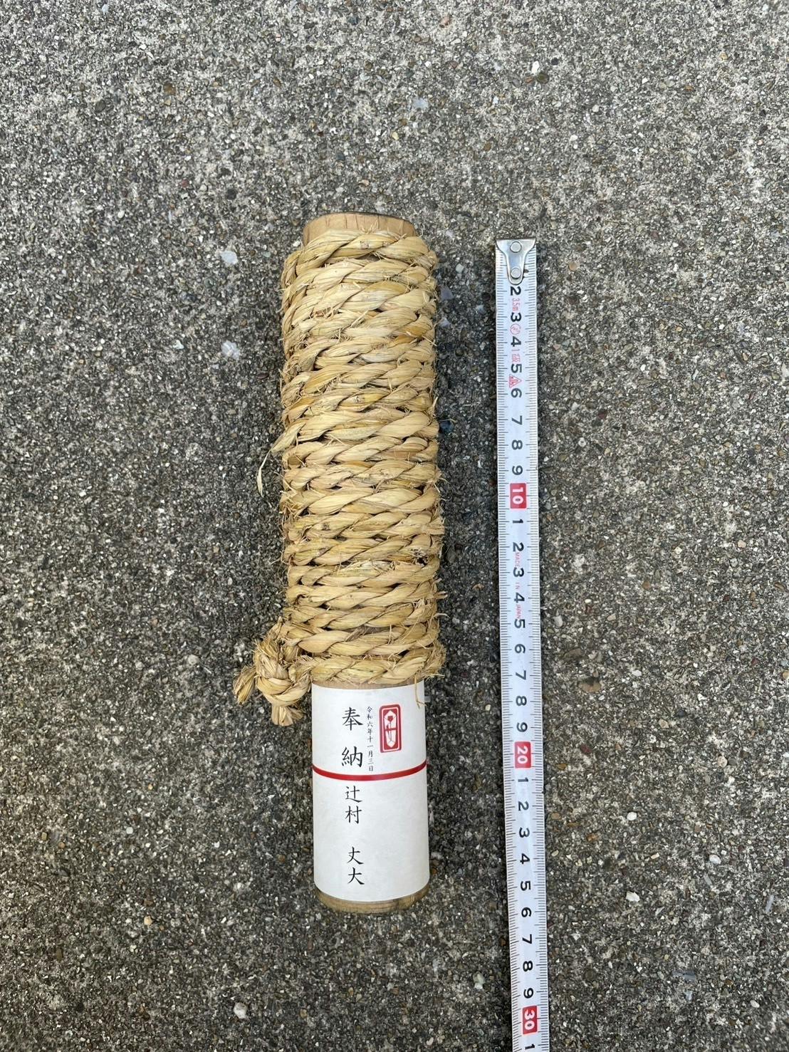 我々の活動地域では、神事として揚げ終わった手筒花火の筒を玄関先等に置いて厄除けのお守りとする風習があります。(効能を確約するものではありません。)