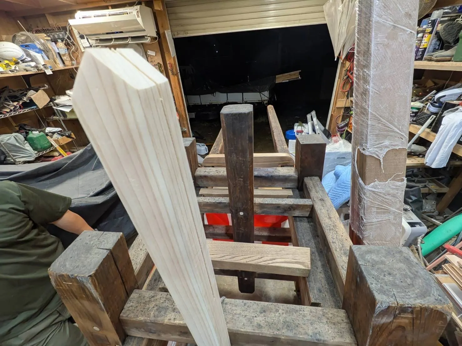 2025/10/07 23:21八華連メンバーが櫓の修繕状況を確認してきました。写真だと分かりづらい点もありますが、弱点に補強の部材が入って強度が向上しているのが伺えます。振込み棒の火の粉が「大のし」に引火しないよう、人が花火に覆い被さるため、新しくなったこの梯子で櫓に登ります。半纏を着た人間がお腹の下に「おおのし」を抱え込み、体で火の粉から花火を守っているイメージ。完成が楽しみです。 もっと見る
