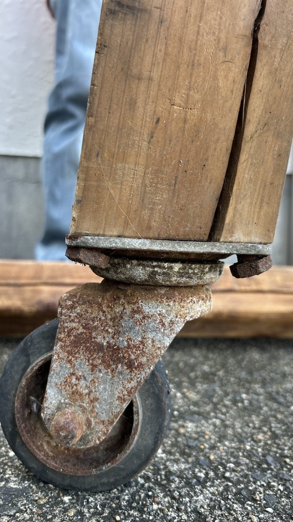 既存の部材を保存しながらホゾの抜出しやズレを修正し、サビた部材や消耗したタイヤなどを交換していきます。