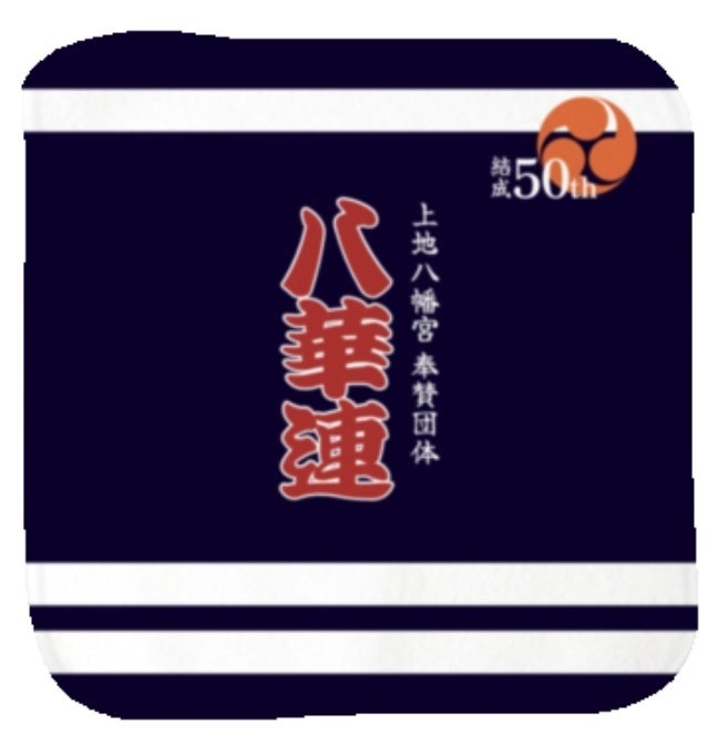 八華連の法被をデザインに落とし込んだ綿100%ミニタオル(24cm×24cm)です。