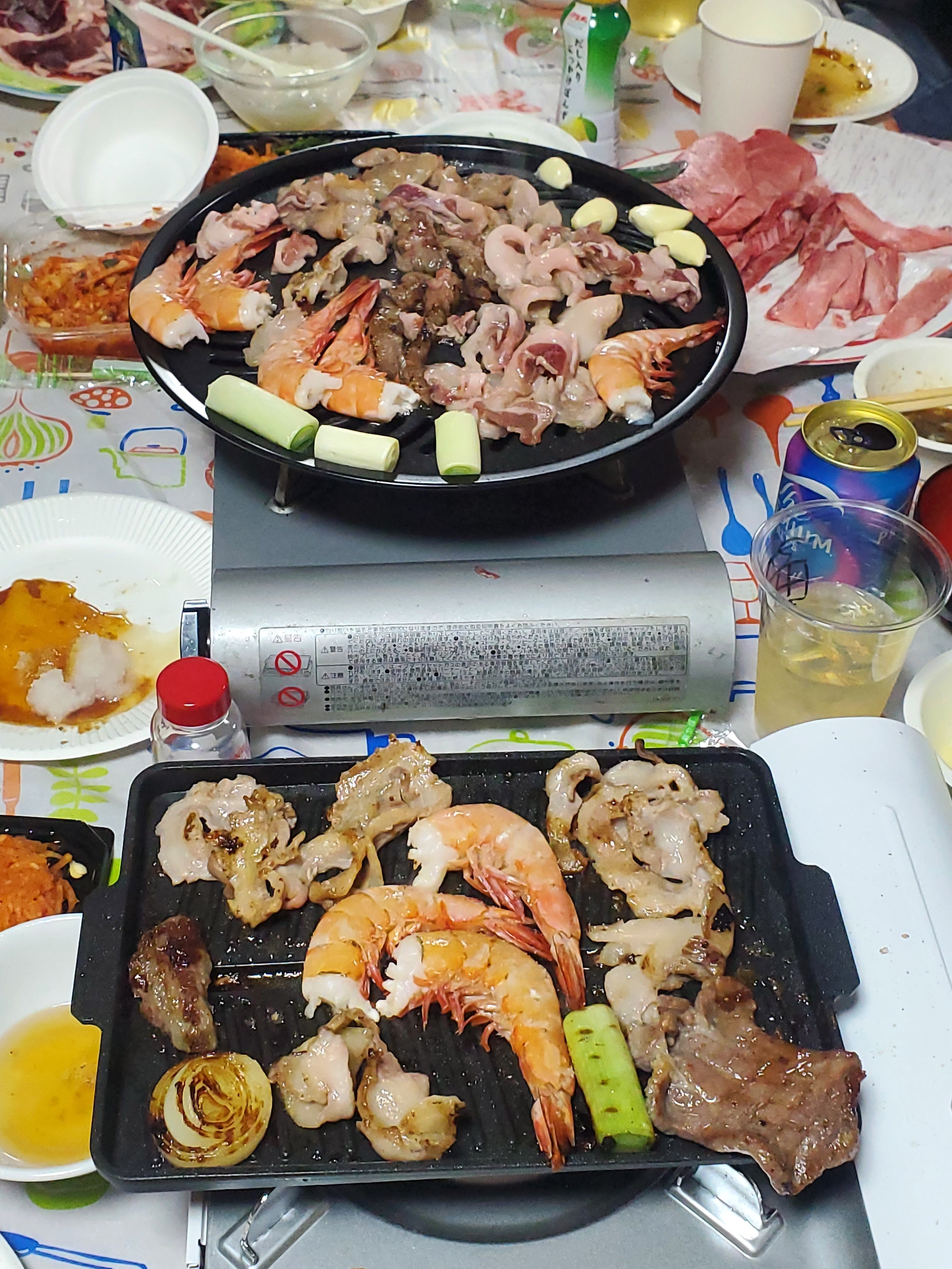 猟師さんからいただいた、朝獲れたての猪肉を中心に、焼肉をしました。