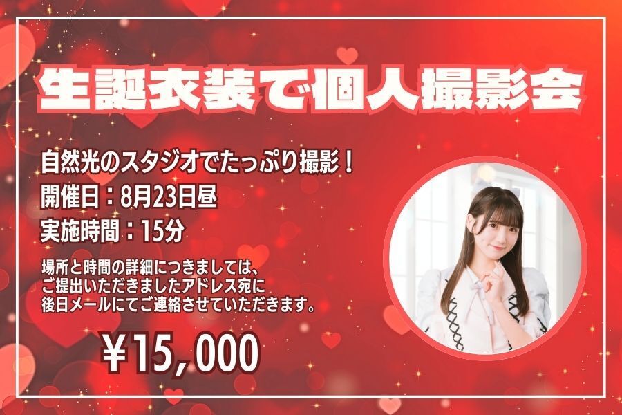 ※場所と時間の詳細につきましては、ご提出いただきましたアドレス宛に後日メールにてご連絡させていただきます。