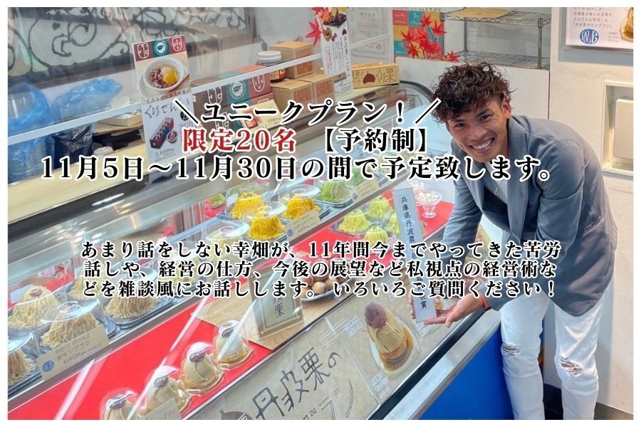 私は、2011年、26歳の頃に結婚を機に兵庫県丹波市に移住しその時に初めて食べた「丹波栗」に衝撃を受け、「なんて美味しい栗なんだ!」「こんな美味しい栗があった事すら知らなかった」「都会育ちの若者の僕でも知らないって事は周知できてないのでは?」と思い、衝動的に「丹波栗を全国に広めたい!」と思うようになり、1年間、販売の勉強と栗の知識を身につけ未熟者ではありますが、栗の生産、加工、販売をする会社(株式会社こうはた 丹波の幸)を設立しました。