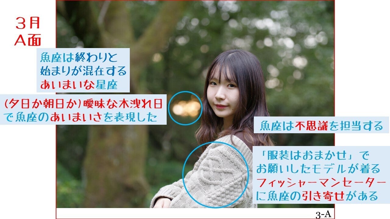 (夕日か朝日か)あいまいな木洩れ日で魚座を表現