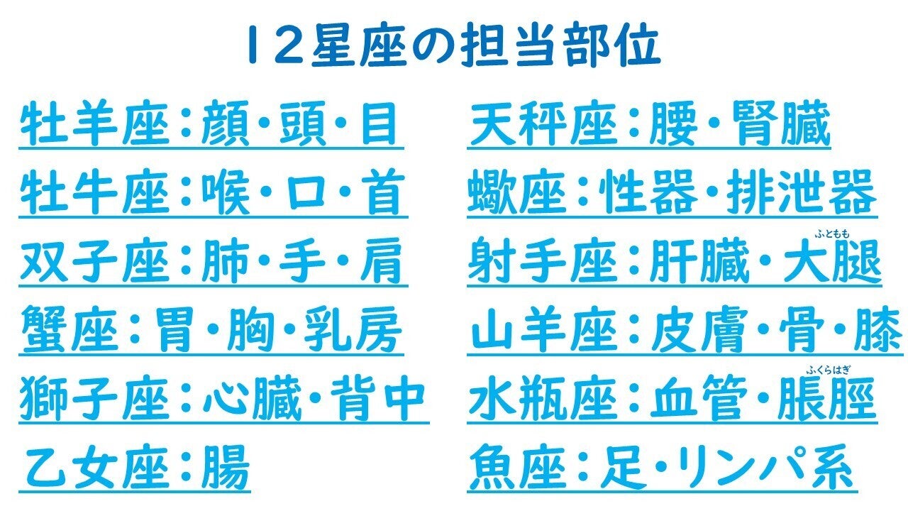 12星座には身体の担当部位があり、