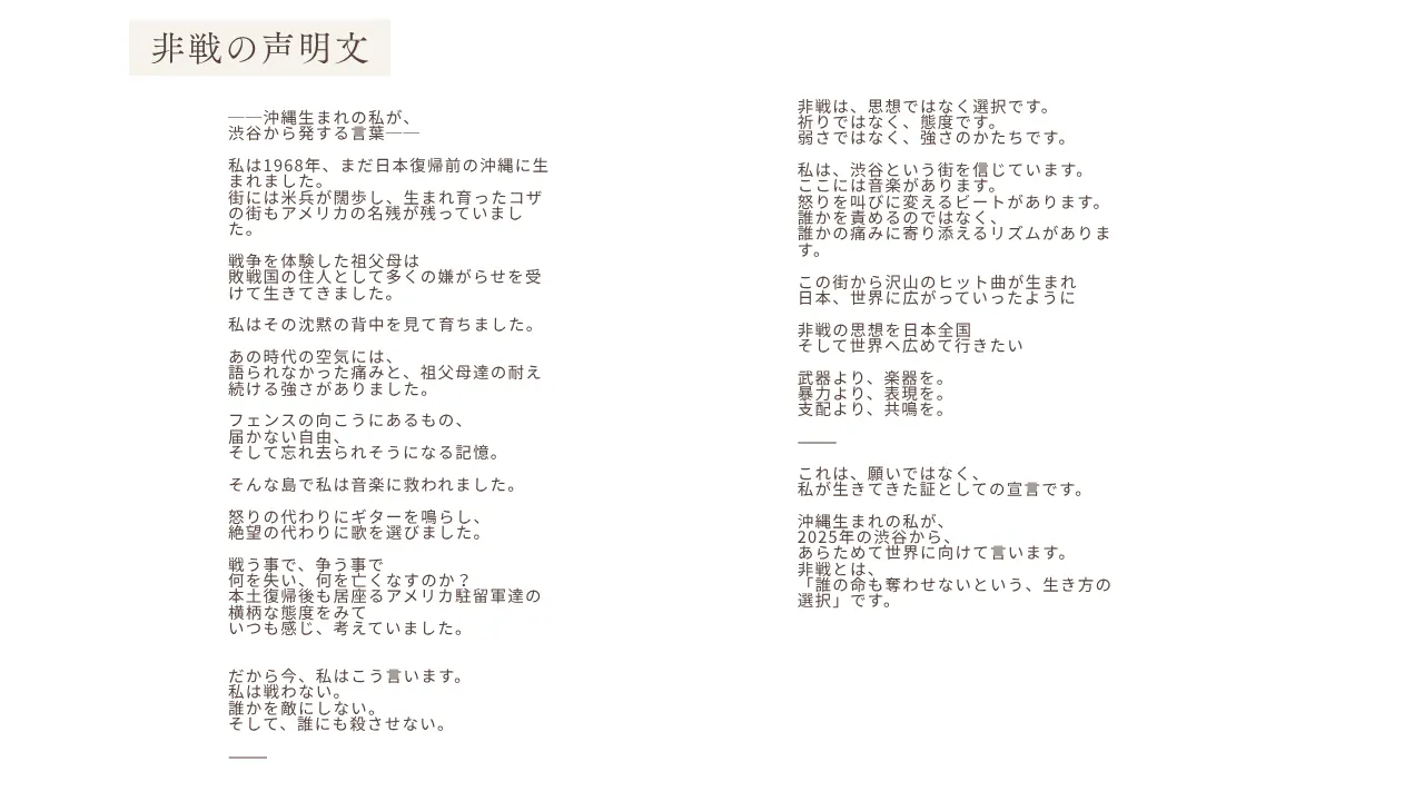 戦争のない未来を願い、渋谷を「非戦の街」として発信する。