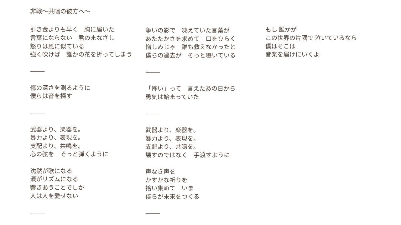 その第一歩として、平和をテーマにした無料ライブイベント