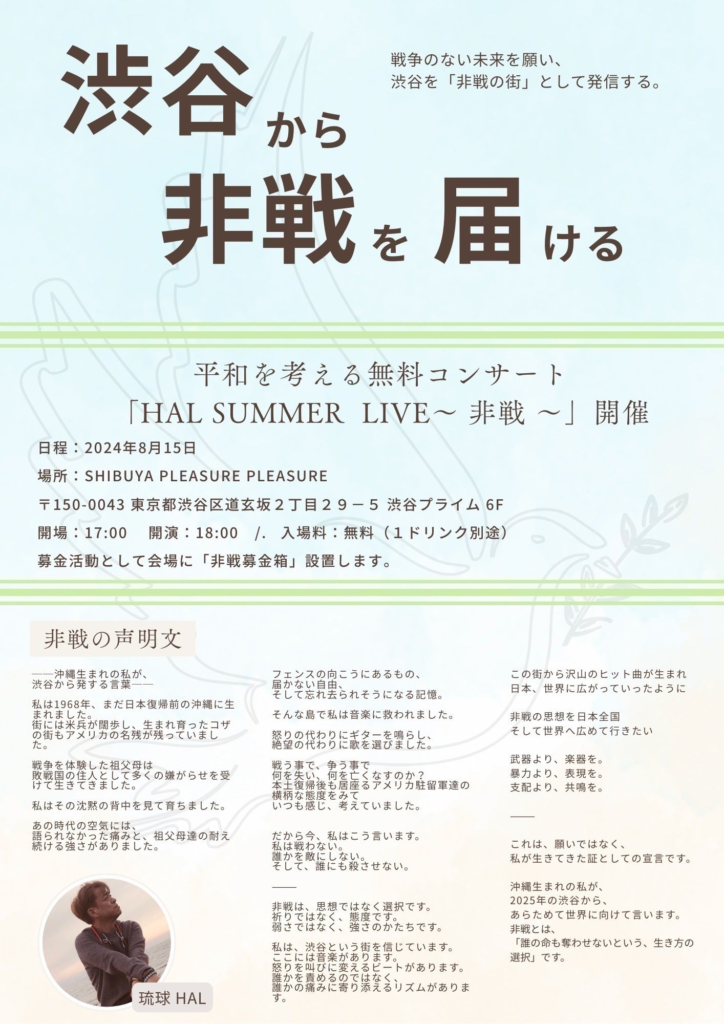 『HAL SUMMER LIVE ~非戦~』 を開催します。