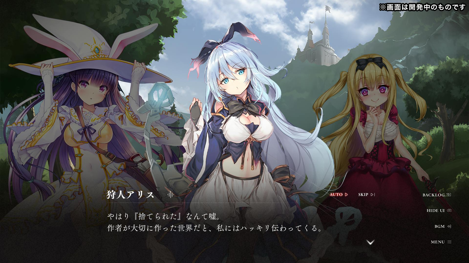 キービジュアル、破壊者アリスのスチル、術士アリスのスチル、狩人アリスのスチル
