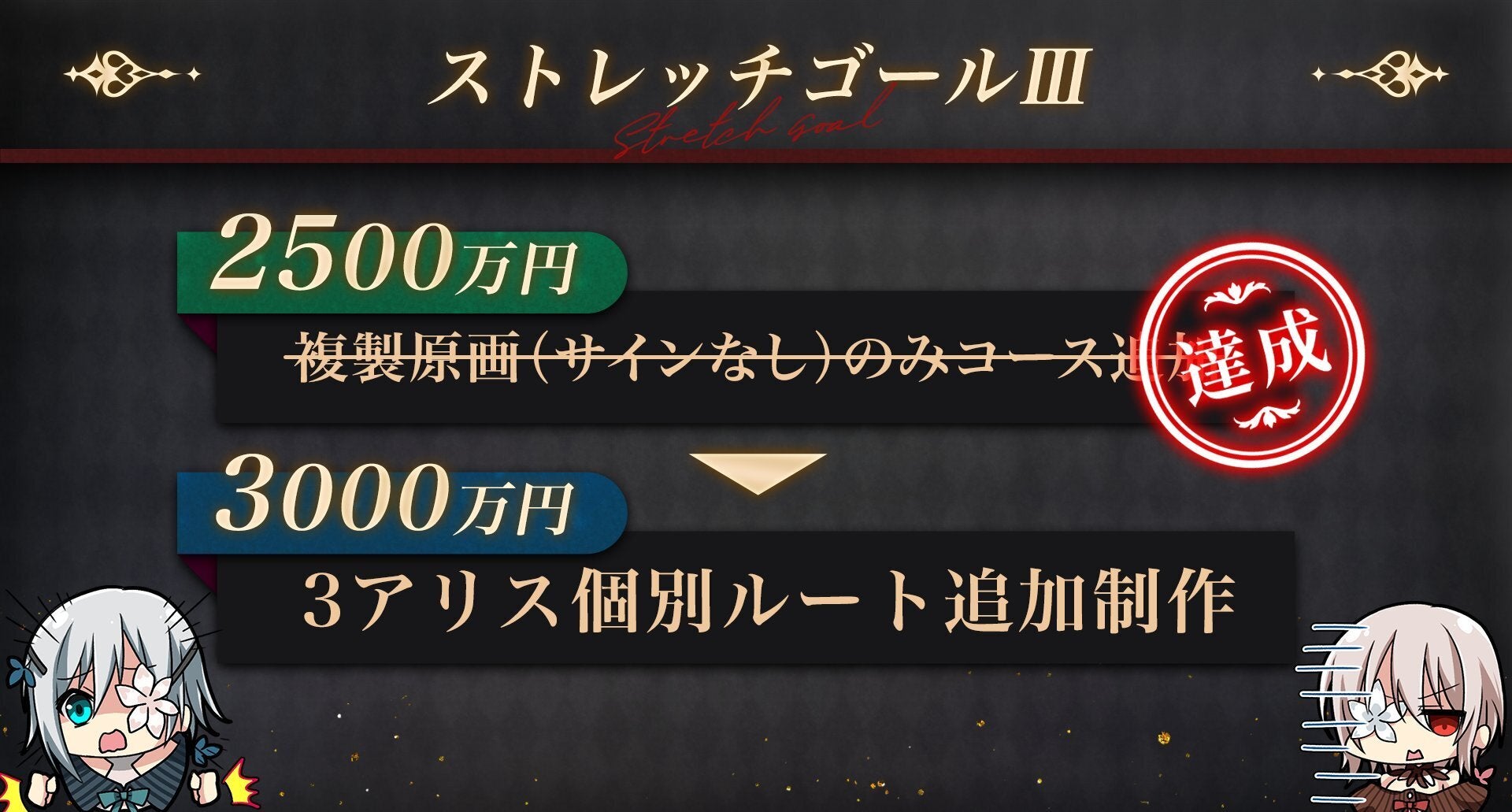 3000万円のゴールに到達いたしましたので、3アリスの個別ルートを追加制作させていただきます!!
