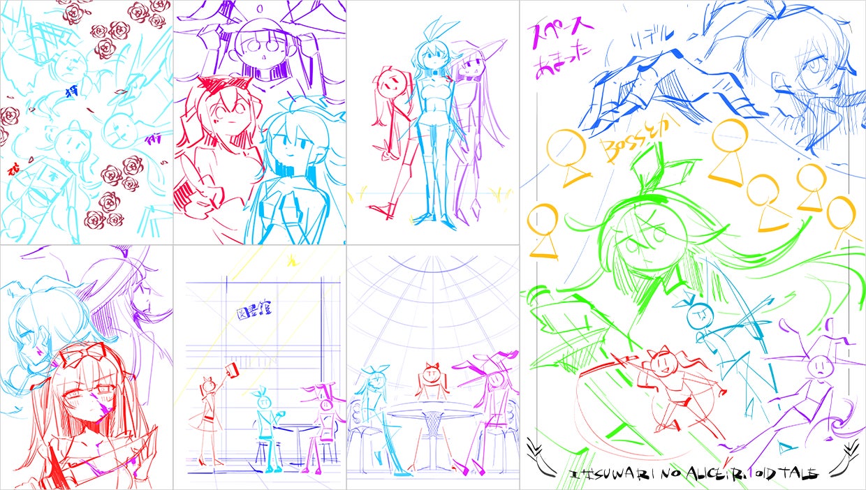 当初は3アリスを中心とする案もあり、まずは私が案出しを行ってみたのですが、どうにもしっくり来ず……。