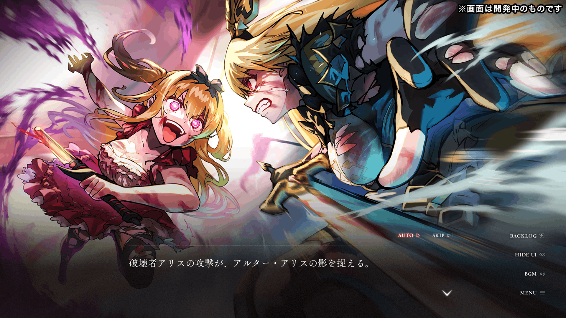 キービジュアル、破壊者アリスのスチル、術士アリスのスチル、狩人アリスのスチル