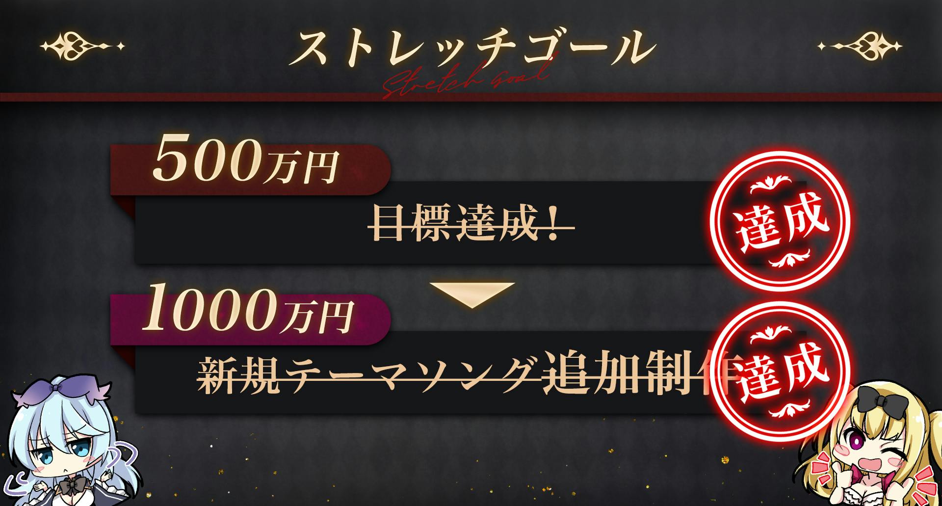 また、ストレッチゴールにつきましては、すべてのゴールを達成いたしましたので、今後は制作予算の観点から見送っていた演出や、さらなるスチル追加・楽曲追加などのクオリティアップ、そして開発陣が「やりたいな」と思いつつ、先生方に喜んでいただけそうな施策で還元できればと考えております。