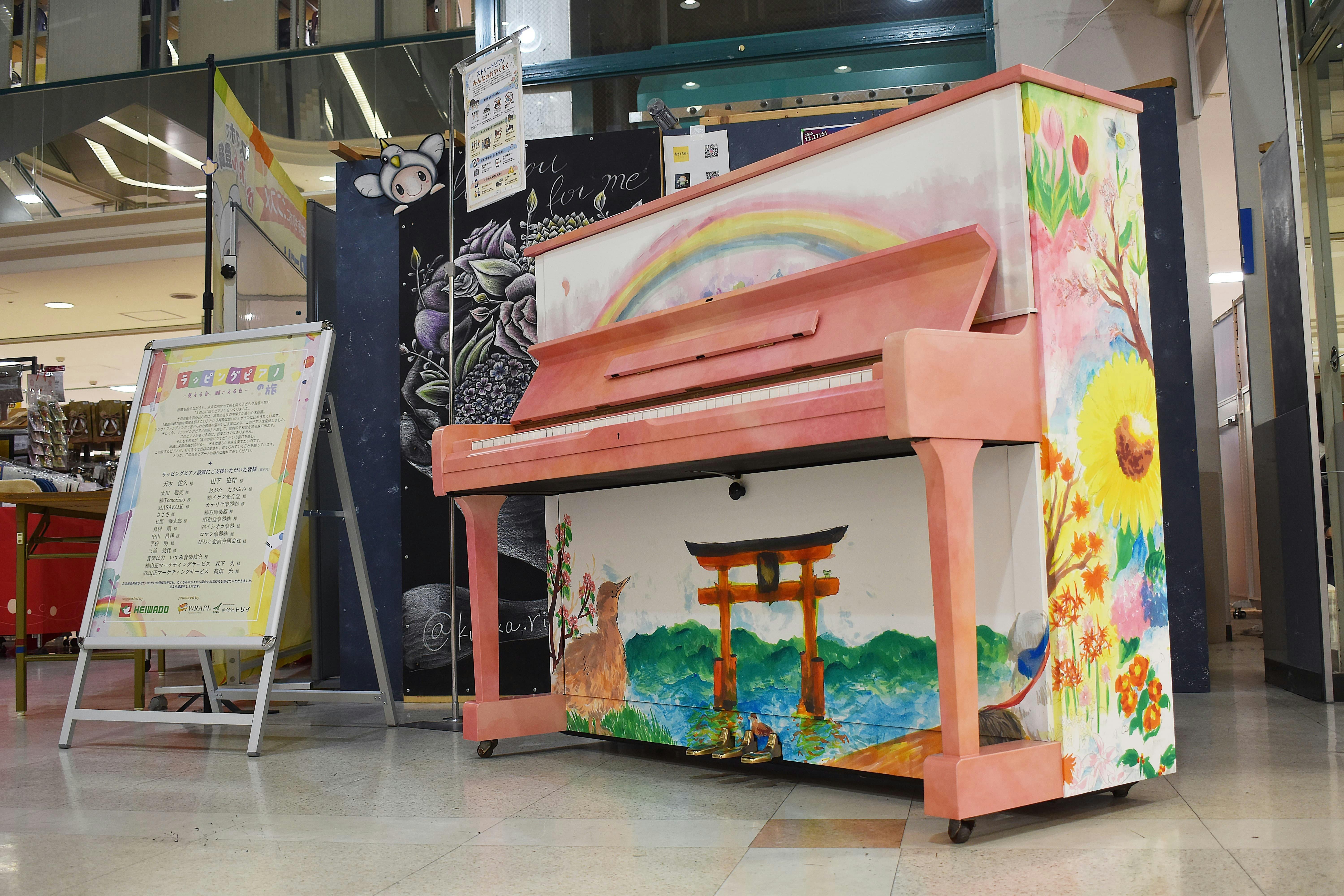皆さまの温かいご支援によって実現したラッピングピアノが、昨日 12月8日(月)16:00、ついに平和堂 水口店・セントラルコート「海の広場」へ設置されました。
