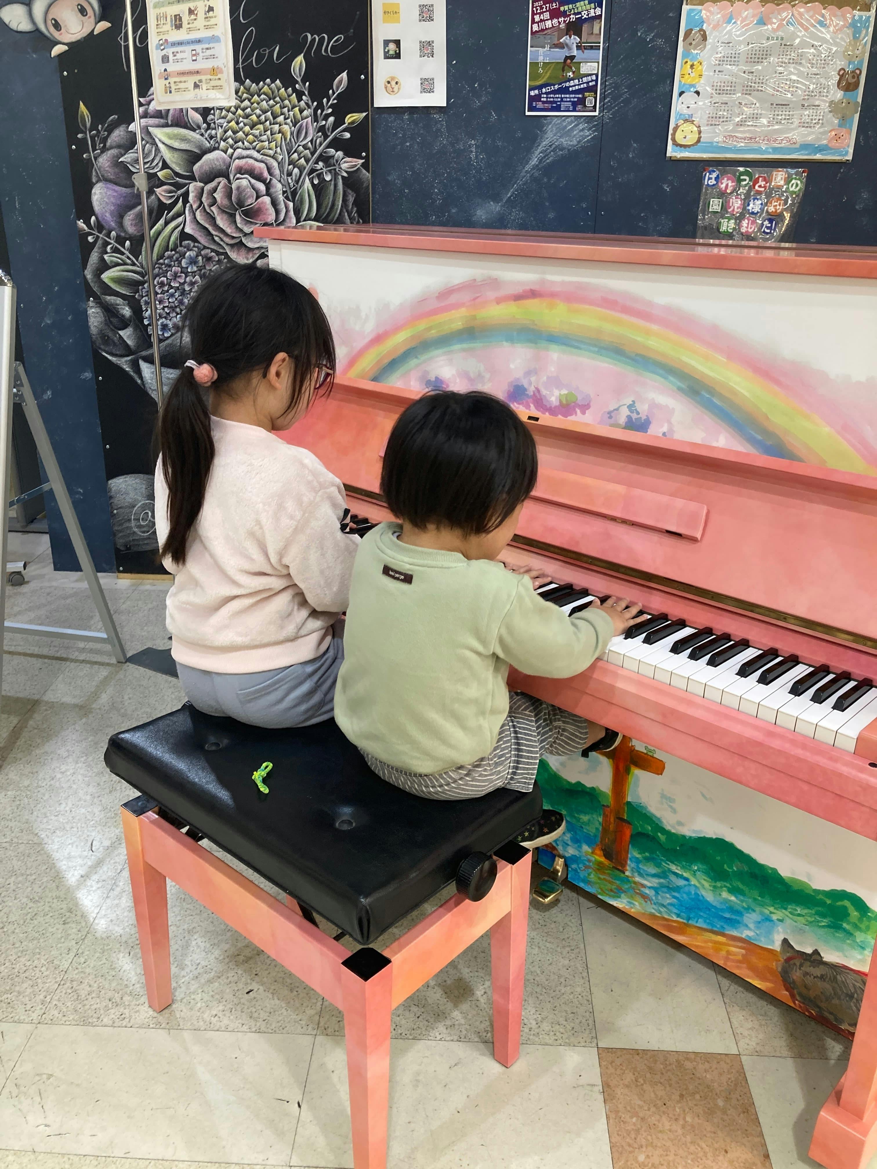 「弾いてみる?」と声をかけると、おそるおそる近づいて、ポロン…と鍵盤を鳴らす子。その姿を見て、またひとり、またひとりと、吸い寄せられるように子どもたちが集まってきました。
