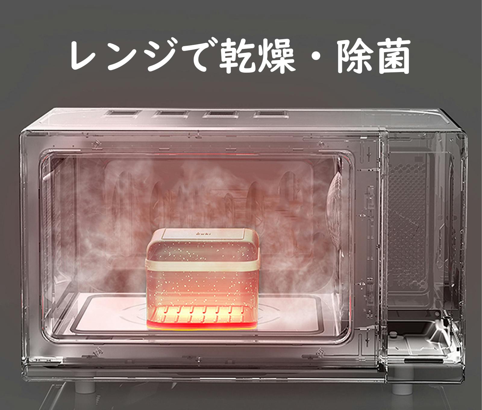 Magicook Boxは、電子レンジを使った乾燥・除菌が可能。梅雨時や湿気の多い季節でも、内部の水分をすばやく除去し、清潔な状態を保てます。
