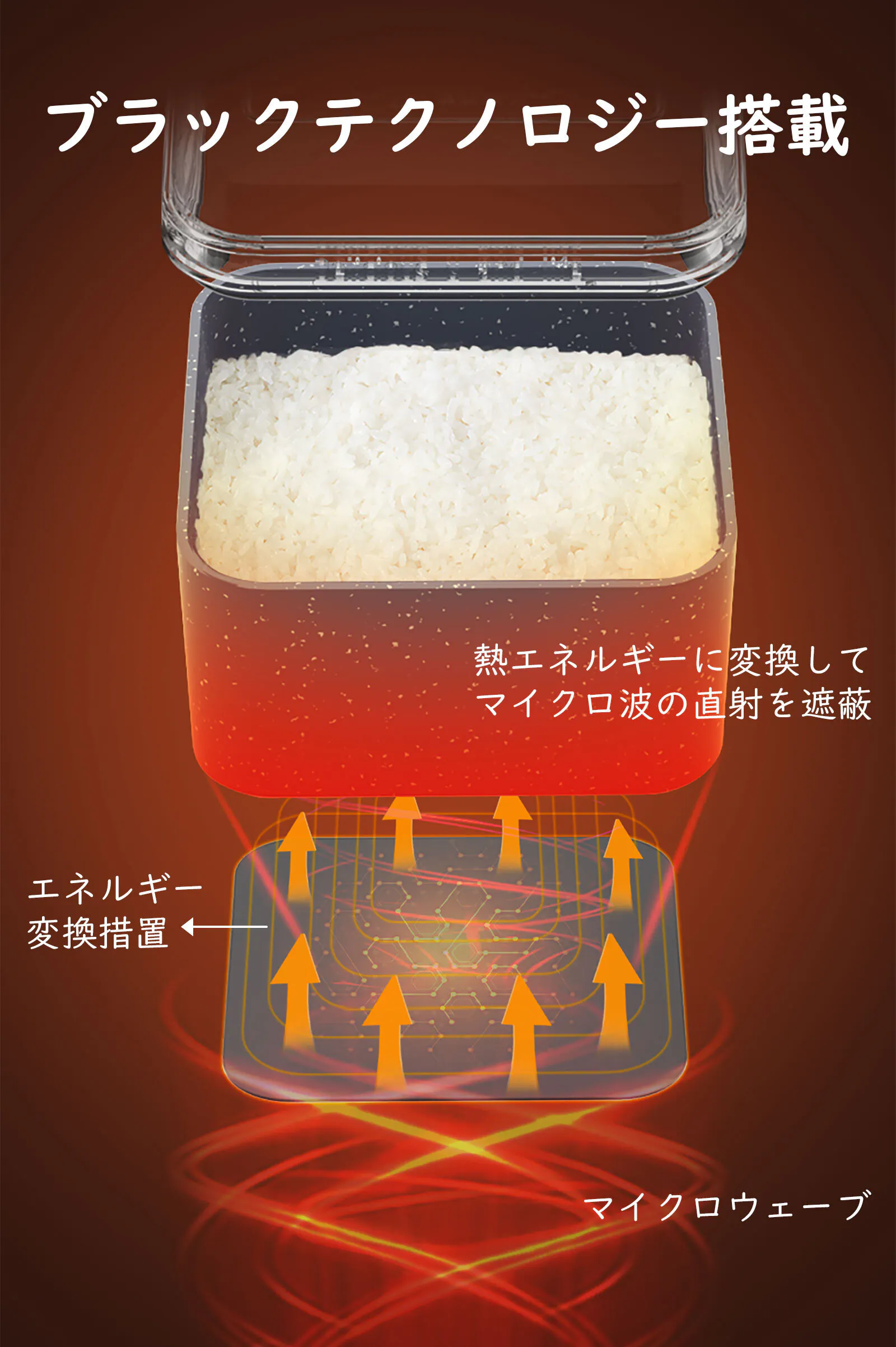 Magicook Boxはマイクロ波熱変換技術を搭載、マイクロ波が直接食品に接触せず、変換された熱エネルギーでスピーディー調理、水分や栄養成分の流失を防ぎます。