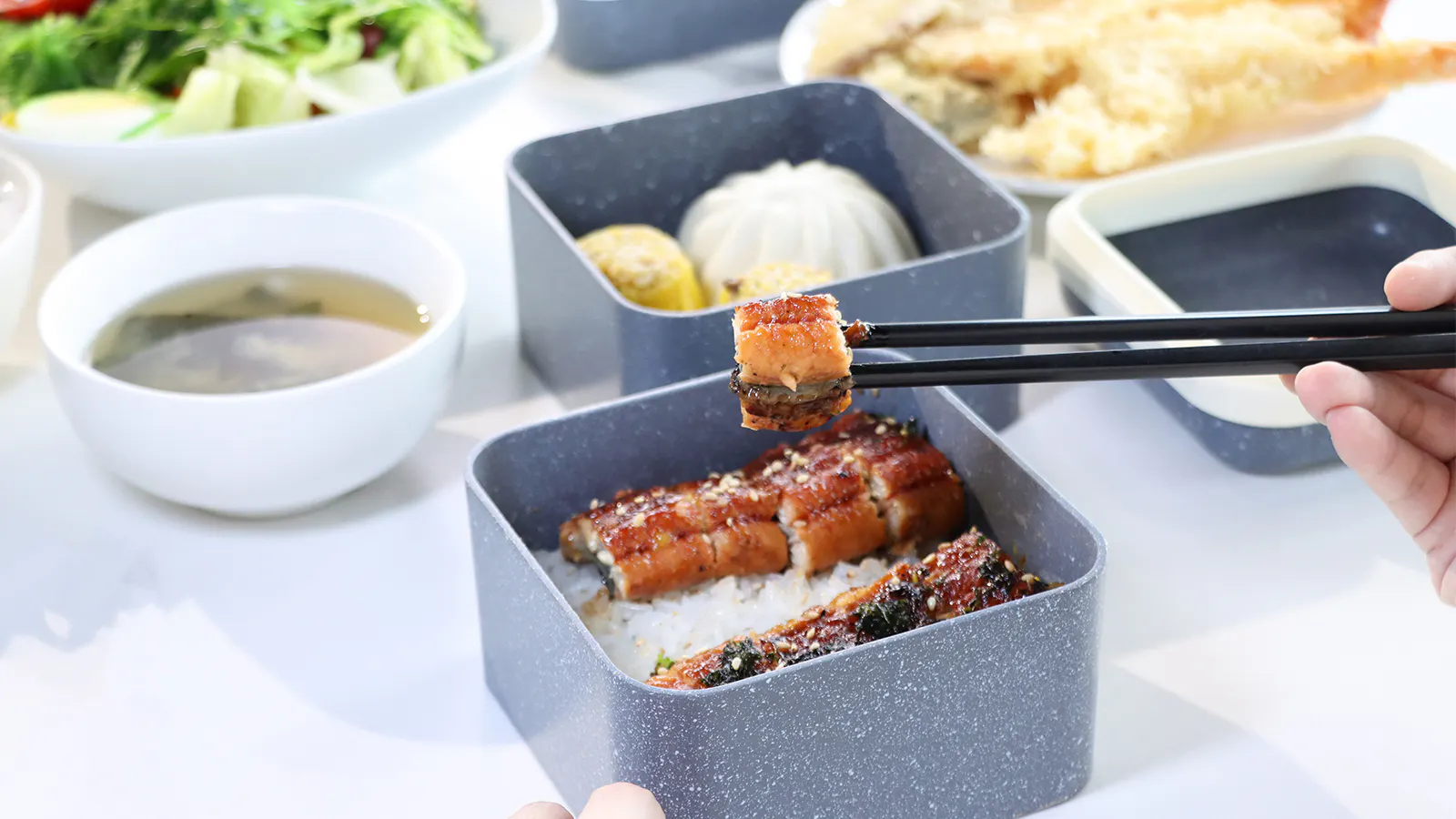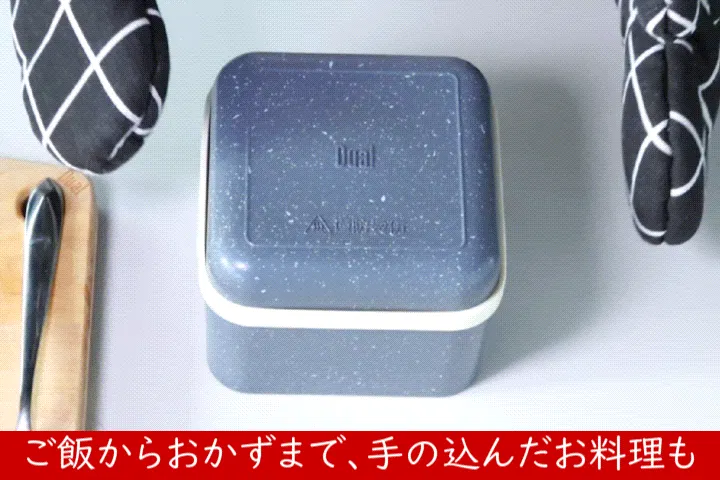 調理、テーブル、保存は全部これ一つで大丈夫、何なら弁当箱としてもご利用いただけます。調理の後そのまま食卓に出せるので、余分な洗い物を増やしません!
