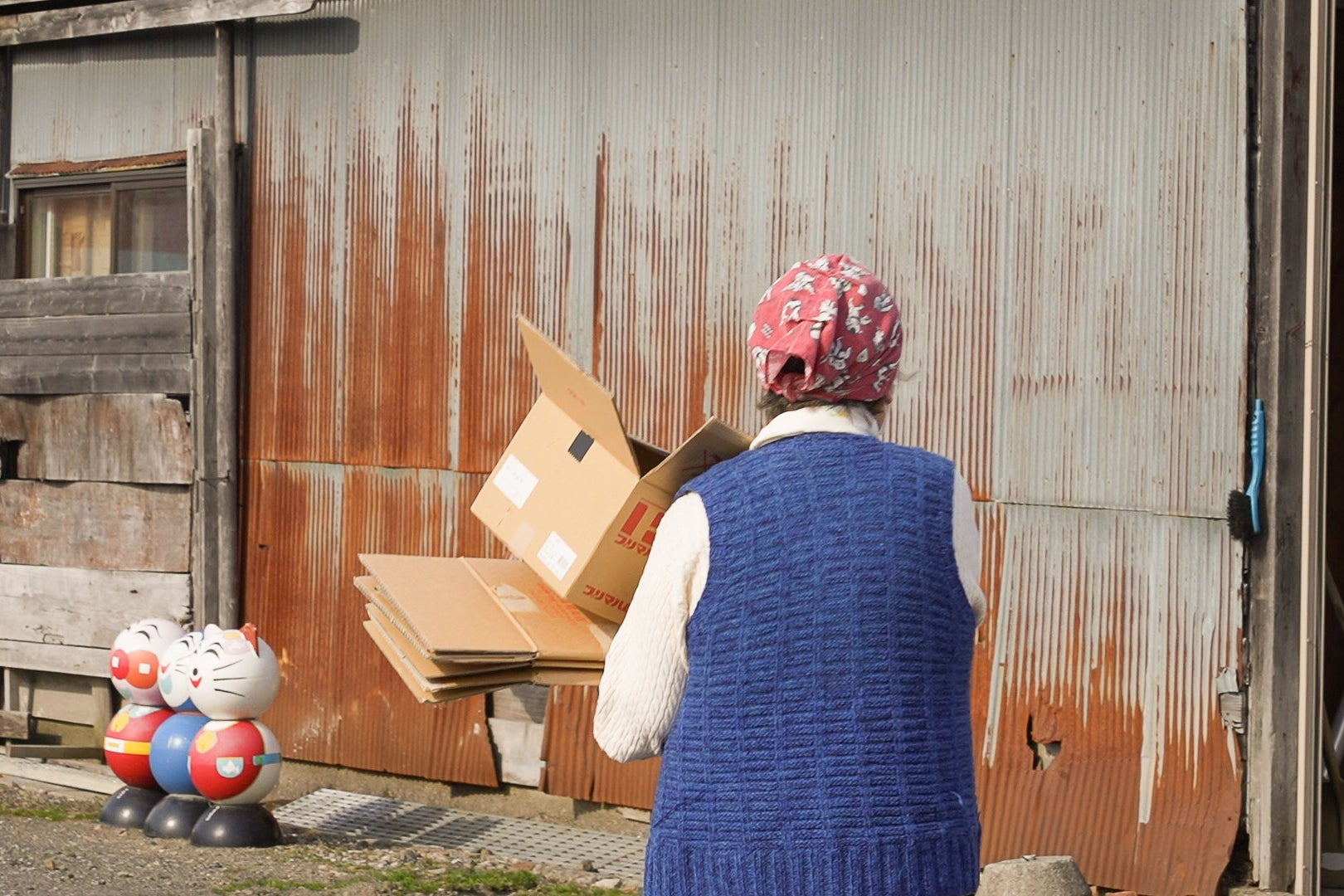 この日は、使い終わった段ボール。外に出る“ついで” に運んで、畳んで、ゴミに出す。
