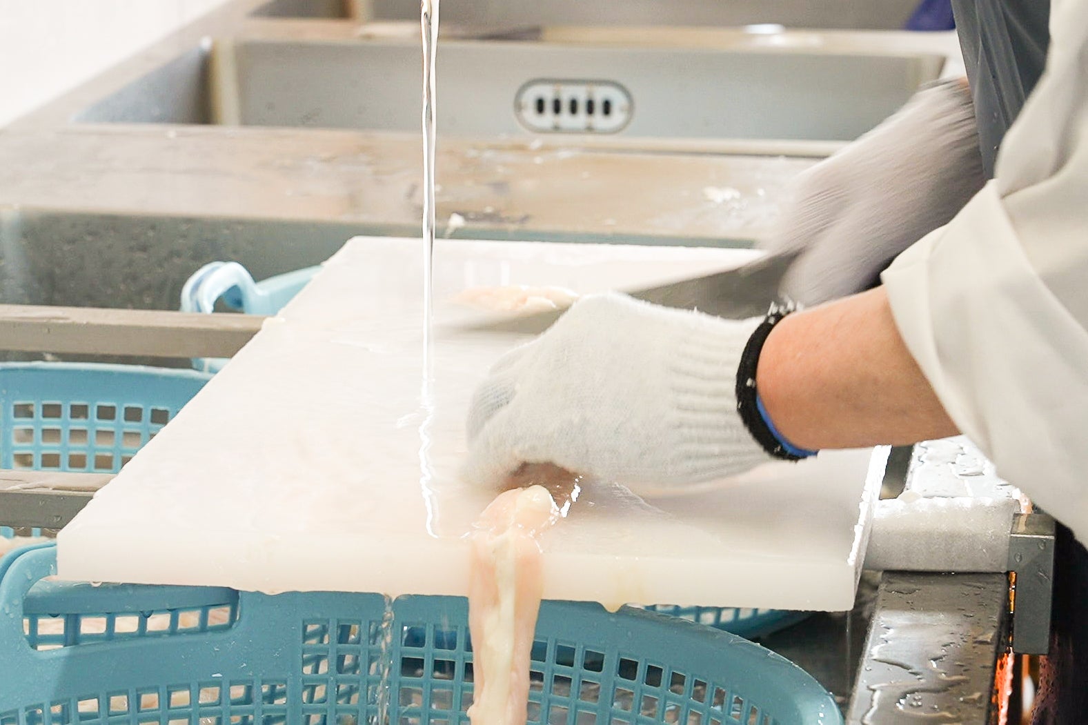 ホルモンの下処理のようす。