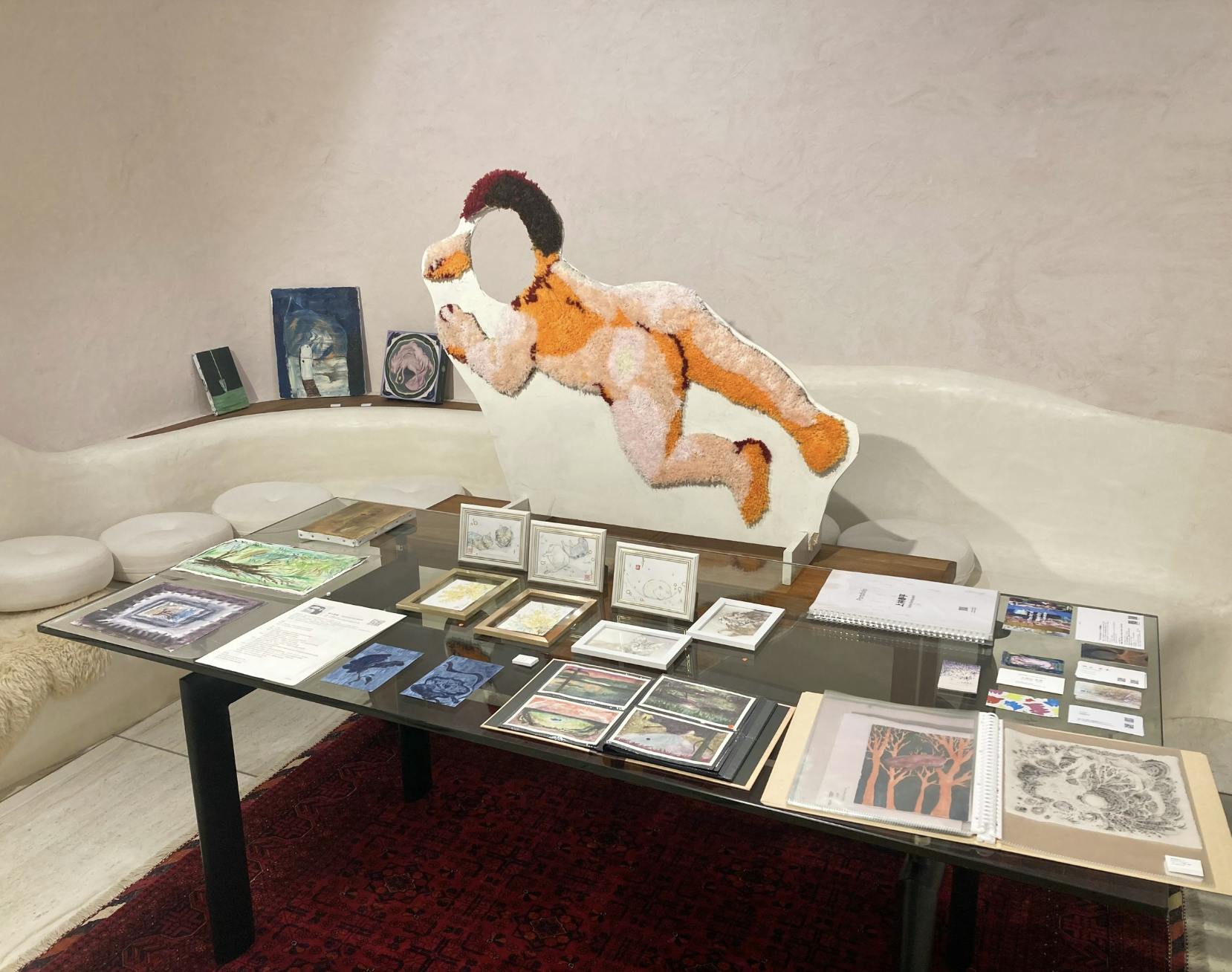白を基調したGalleryには8名の若手作家の個性豊かな作品が並び、隣のスペースには普段展示する機会が少ないドローイングやハガキサイズ作品、面白い立体作品もご覧いただけます。(顔ハメパネルでの記念撮影もできます!)