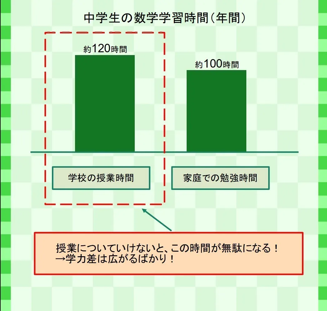 数学の場合、一度授業についていけなくなると追いつくには非常にコストがかかります。